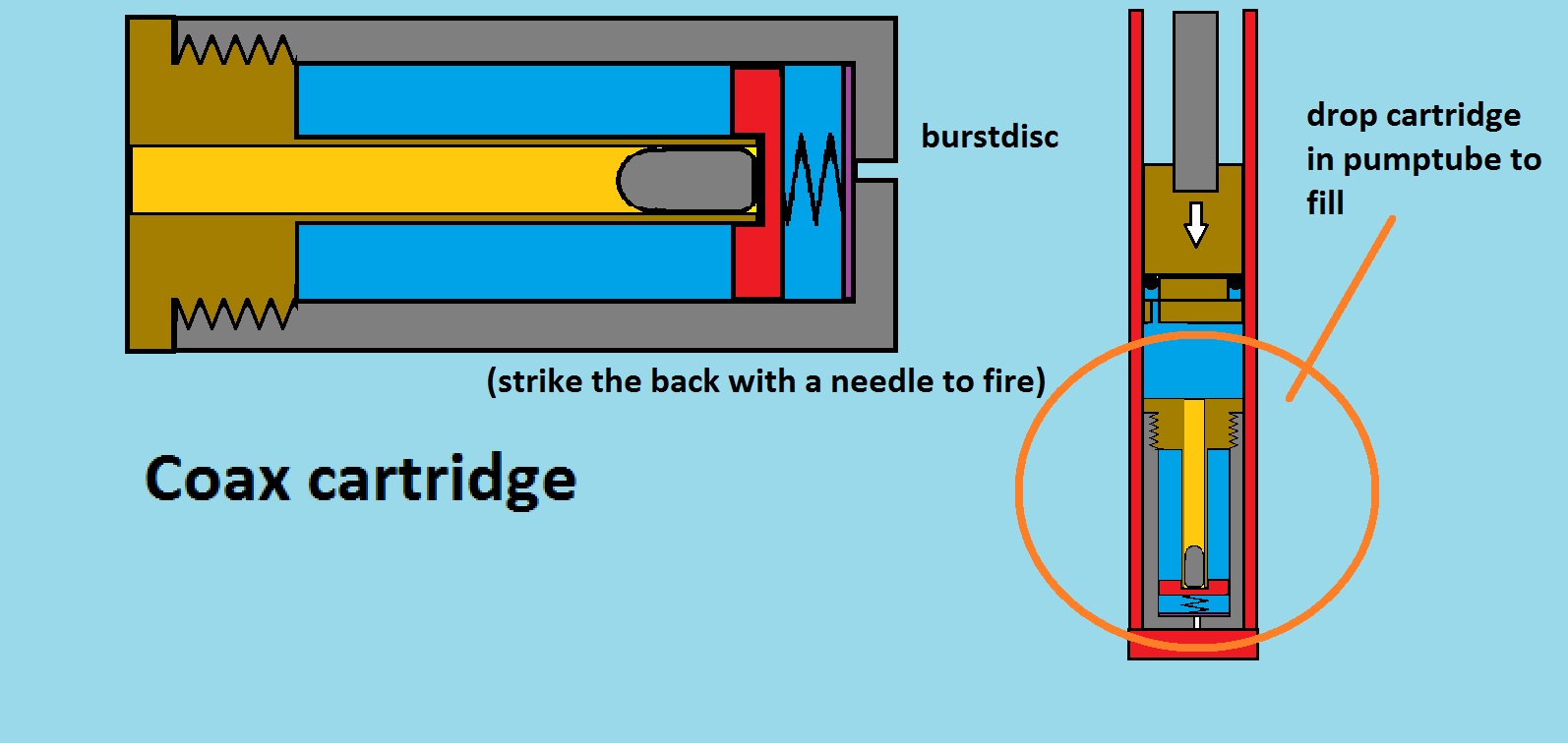 Anybody remembers larda's cannon size cartridge build? It's basically a coax piloted by a burst disc that gets pierced when firing, exactly like your idea btb. Can't find the link to the thread.