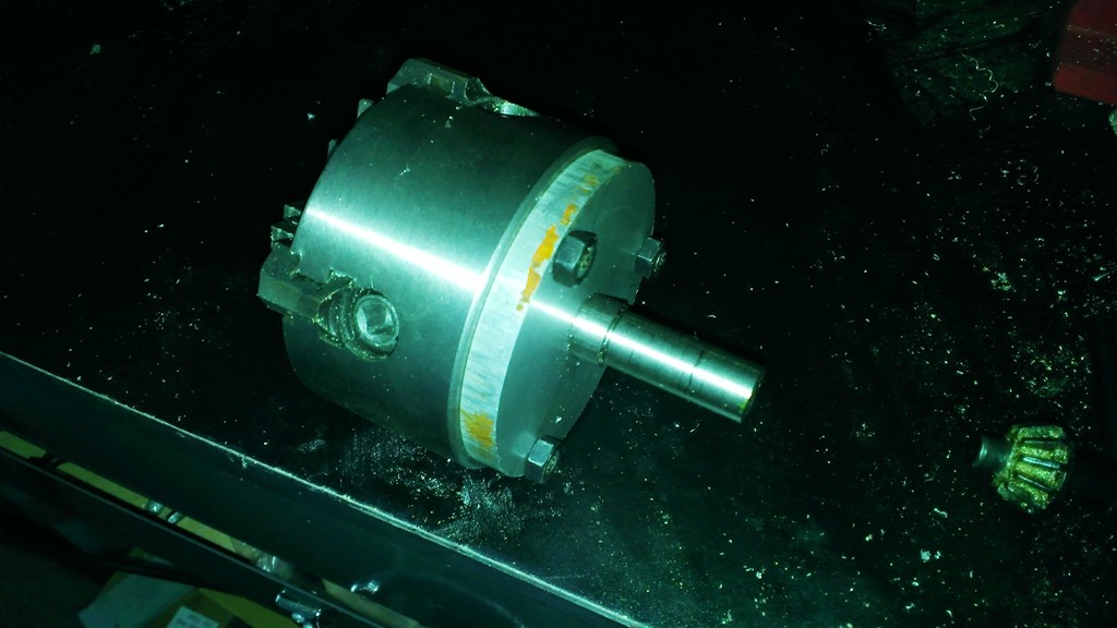 Aluminium face plate (can't find same size in steel) and SS shank. Didn't have SS in hand big enough to make it MT2 taper, shame that I need the drill chuck to hold it, but it work so...