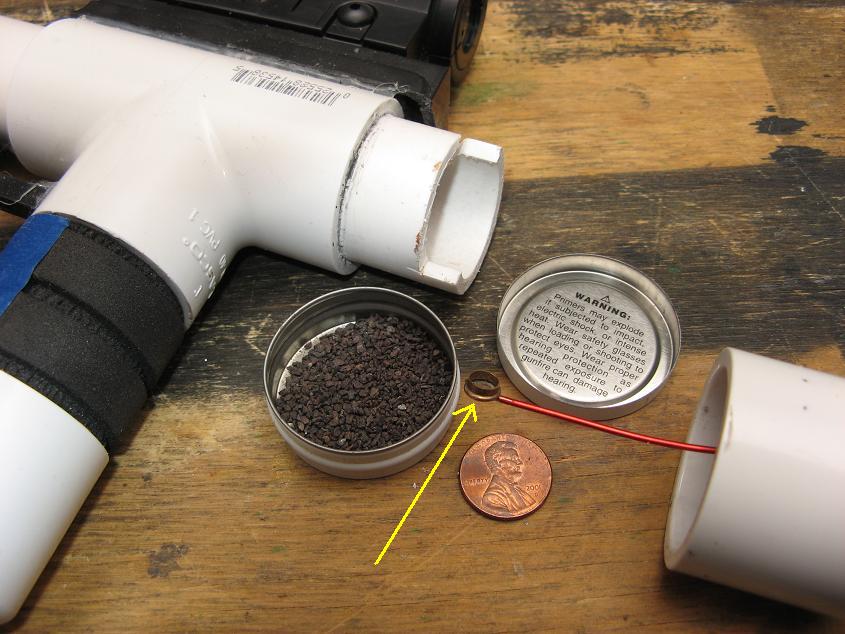 Yellow arrow is pointing to the little scoop we use to dish out the carbide. Its a cut down .22LR shell you can almost count each grain that the scoop holds.