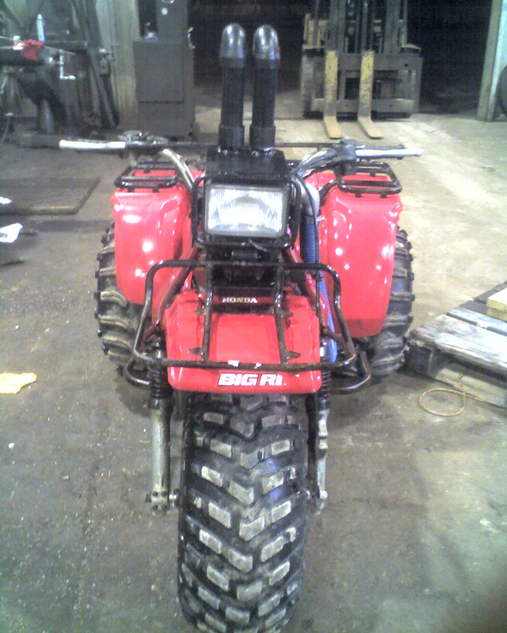 So to solve the problem, I snorkeld my bike of choice, an '85 Big Red 250. I ran the vents for the crank case, rear end, carb, and rear brake into one snorkel and my air breather to the other. Tell me what yall think.