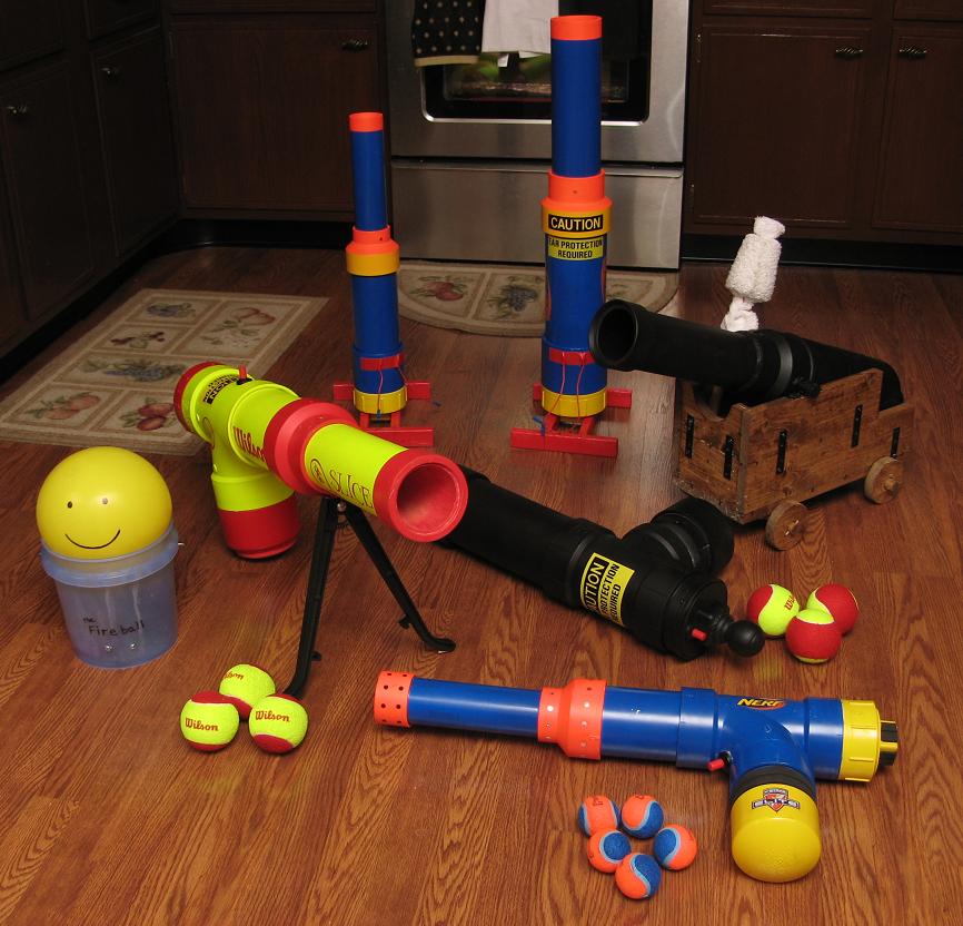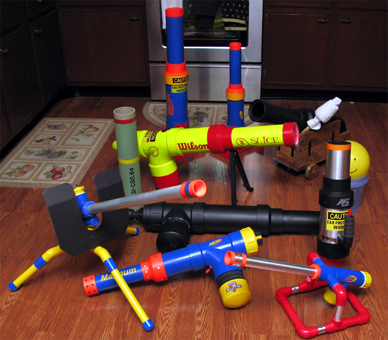 Wow, you've amassed quite a large arsenal of good looking cannons there, I'm really pleased you painted them all nicely, they all look, well, professionally made, I think a lot of people neglect the finer final touches sometimes, it saddens me when someone makes a brilliantly performing cannon then soaks it in cruddy paint, or plasters it in bondo that they never bother to smooth down.