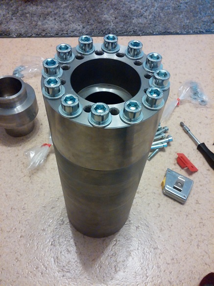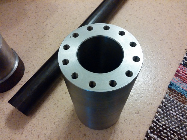 I got some machining done today, the chamber piece has now fully machined surfaces and tomorrow I will drill and tap some holes to the ends for attaching the end pieces. The chamber ID ended up at 77.6mm. There is not much more to see at the parts at the moment, I will probably take a picture of the chamber tomorrow if I get the bolt circles all drilled and tapped.