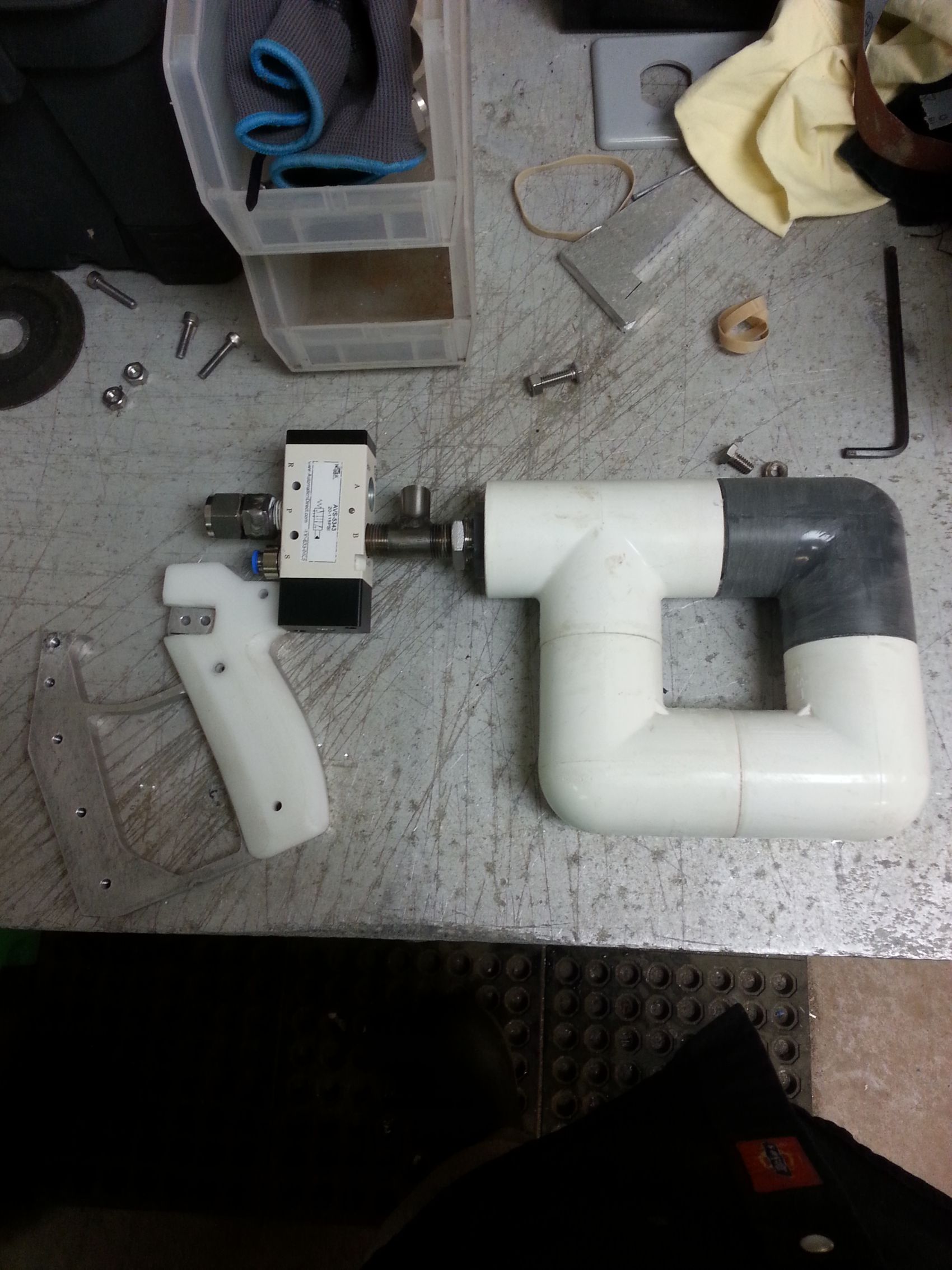 Still to do is smooth down chamber/stock and paint, fit the reload magazine and get it to work !, top rail to mount stuff like sight, sleeve over the barrel for silencer look, some plumbing.