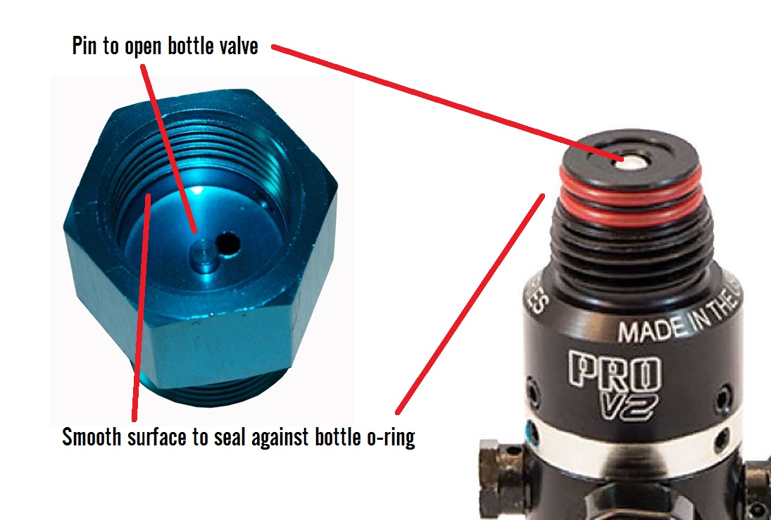 You will however need a smooth surface inside the fitting beyond the thread for the o-ring to seal, and some sort of pin to open the valve on the paintball tank.