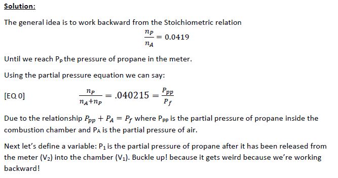 I tried plugging is some test numbers into your Pm equation (the second one down) and I was getting slightly different results. It might be hard to figure out this discrepancy because we took different approaches. I used partial pressures and did not account for atmospheric pressure because it was on both sides of the equation. But I want to look into this further to see if I'm making an incorrect assumption here, because it might be that I suspect. And you're approach uses mix number... Just to be clear n=1 (1x) means a regular old combustion right? For now here are my calcs worked out. I adapted it to use the same variable notation as you I believe.