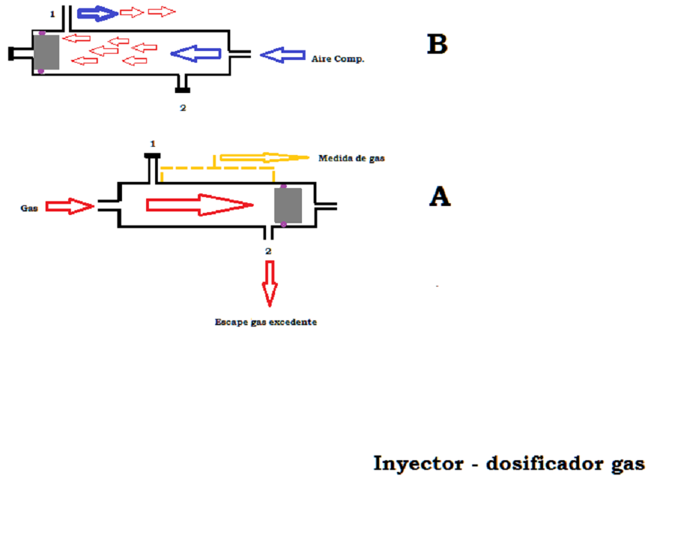 At the same time, in this "A" position, the 4/2 valve releases the pressure on the side of the piston in the diagram, thus remaining at atmospheric pressure to be able to go to this side when gas is recharged again.