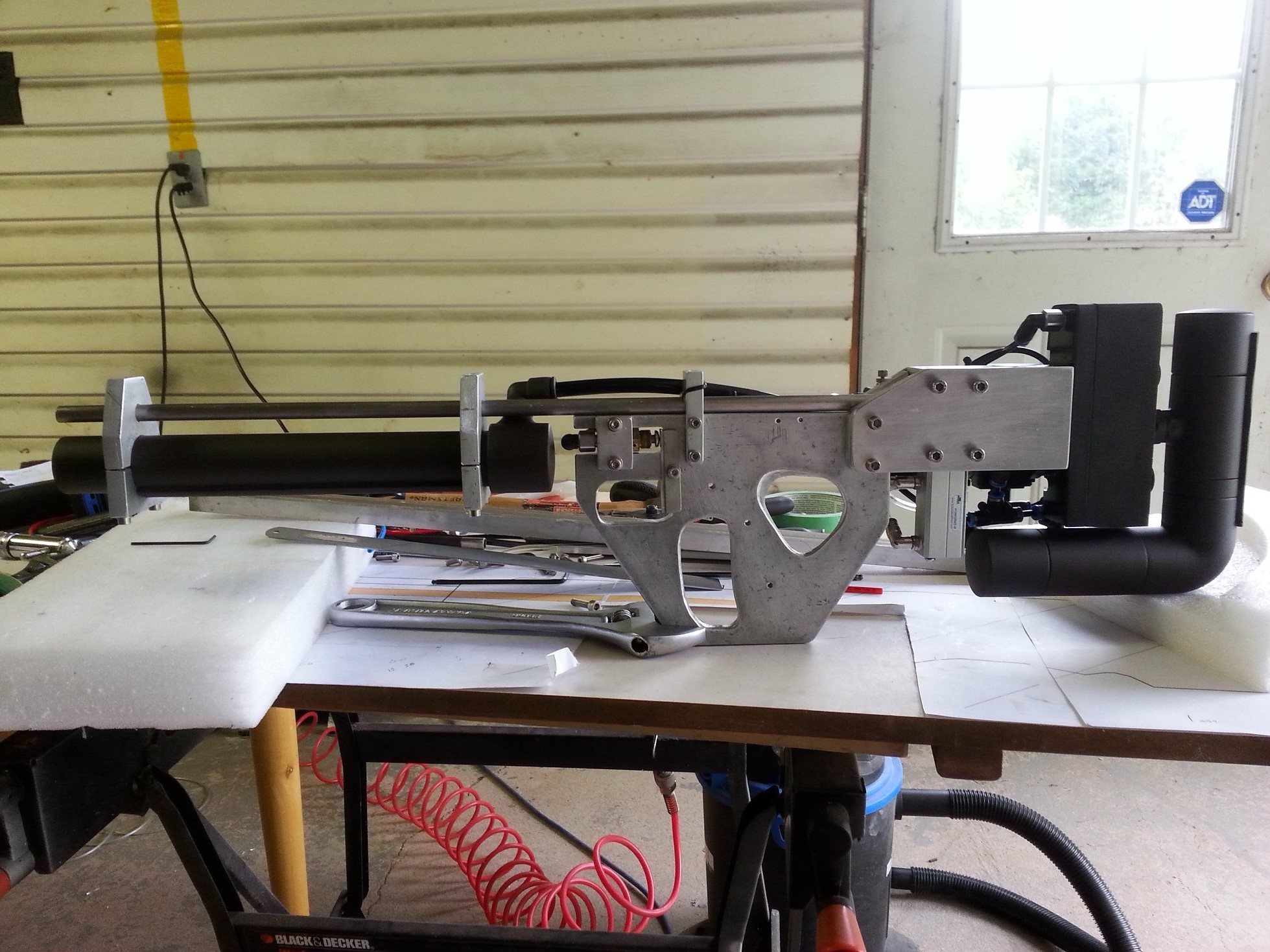 Did some actual firing at 140psi, no sights yet. Extension takes barrel from 500 to 800mm, still has some kick with it on.