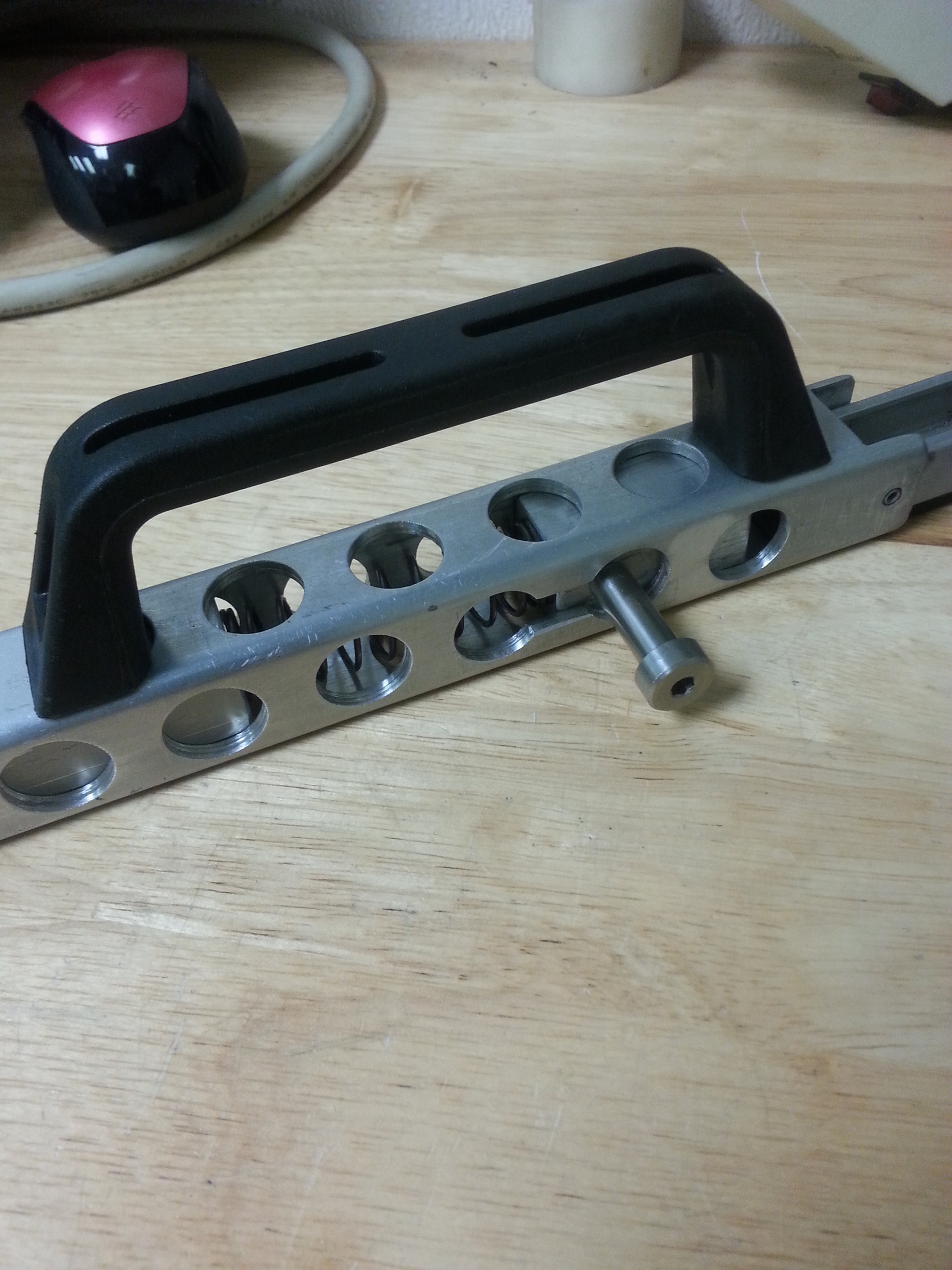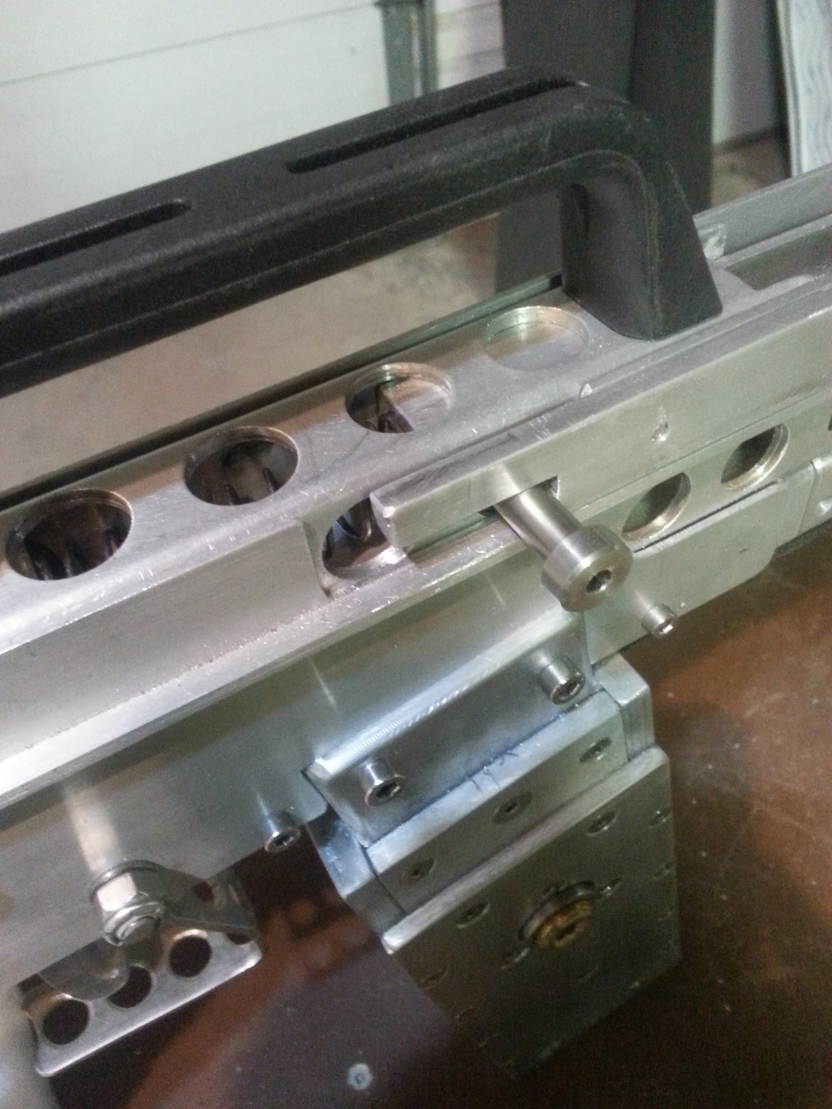 Never being really finished I added a couple of extras, carry handle, which meant adding latch to keep stock locked in the folded position. And a real laser pointer.