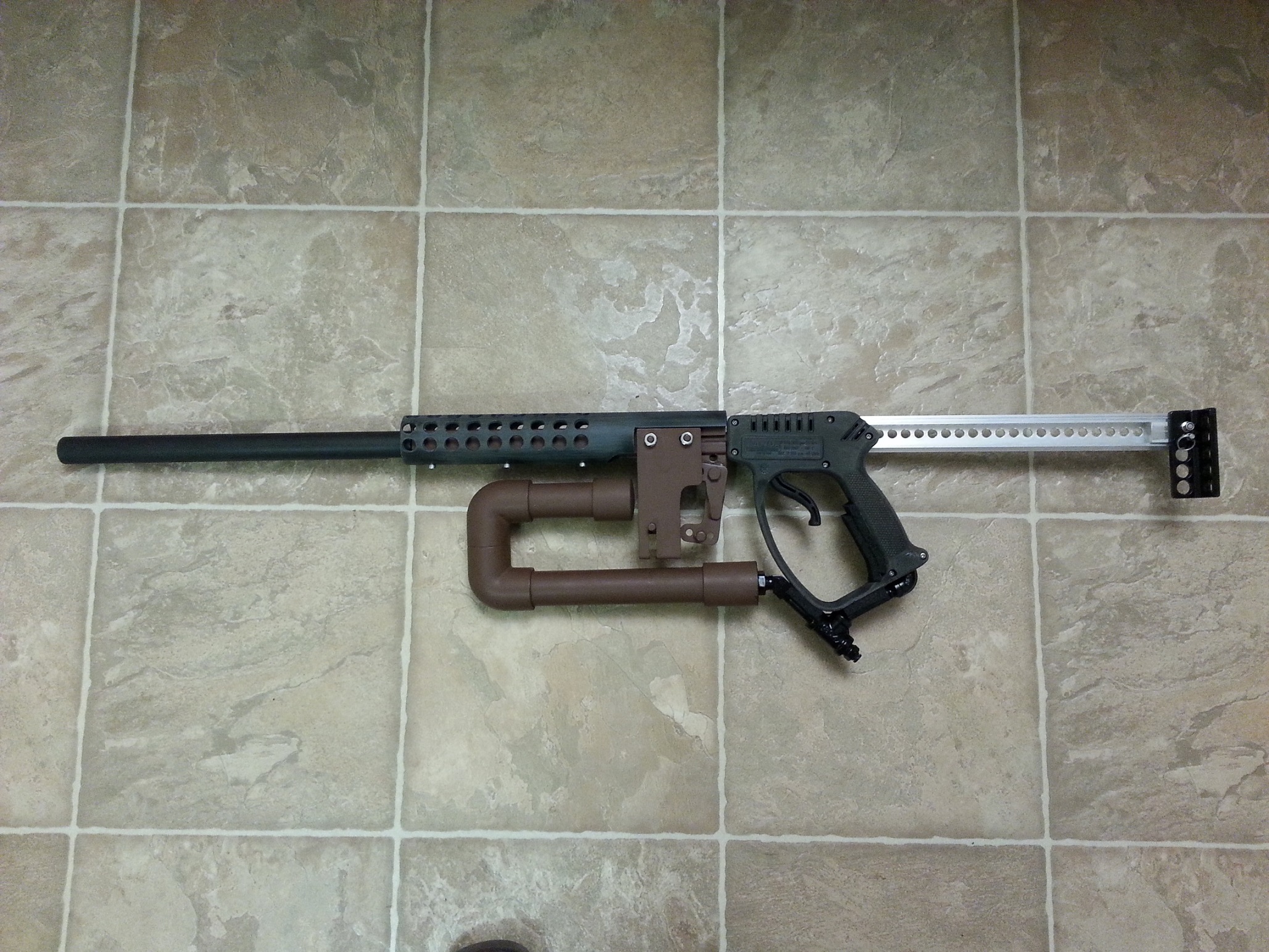 Not going to have great power as it uses a pressure washer trigger, so relatively low flow, and lots of dead space. But will hopefully look good and will take a 20+ round magazine, pop cans look out