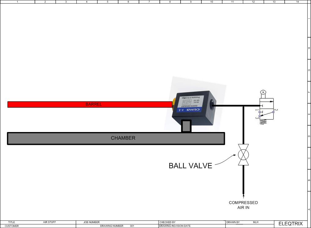 What you need is a normally open 3/2 valve, I used a normally closed but it has 3 ports so I connect to the 2 open ports and exhaust on firing. I think you have a normally closed 3/2 with a hidden exhaust port.