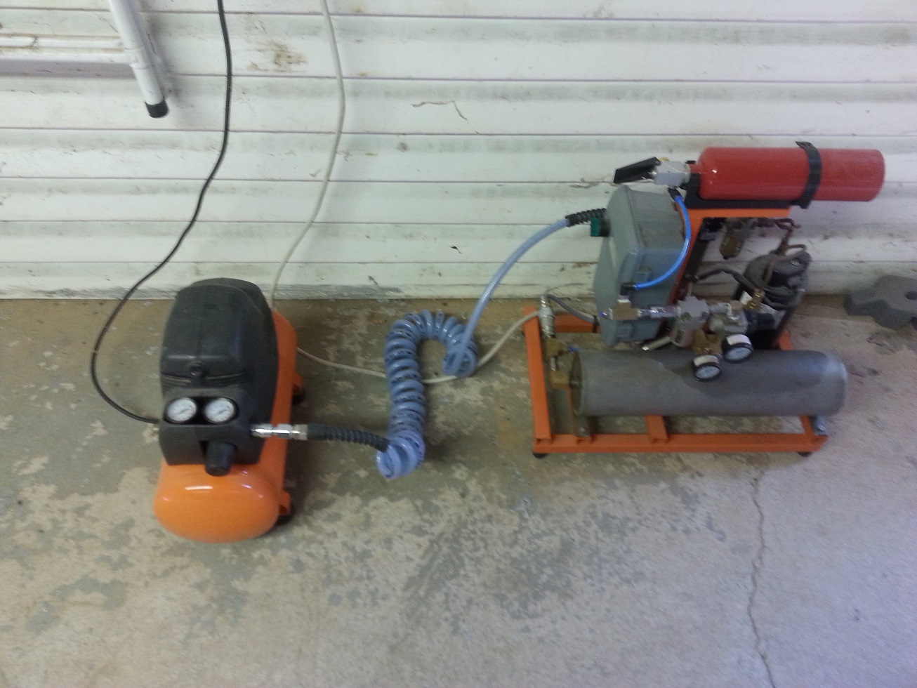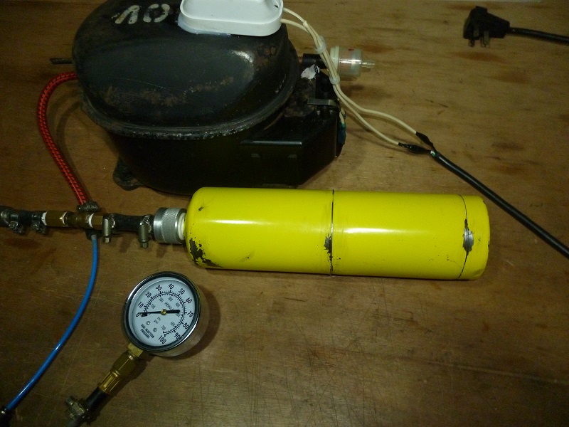 Recycling motor compressor refrigerator, works perfectly :) to compress some air in an old steel MAPP can. Luck that Jack followed him ami, because it solves the fact of trying some small hybrid without manual pump.