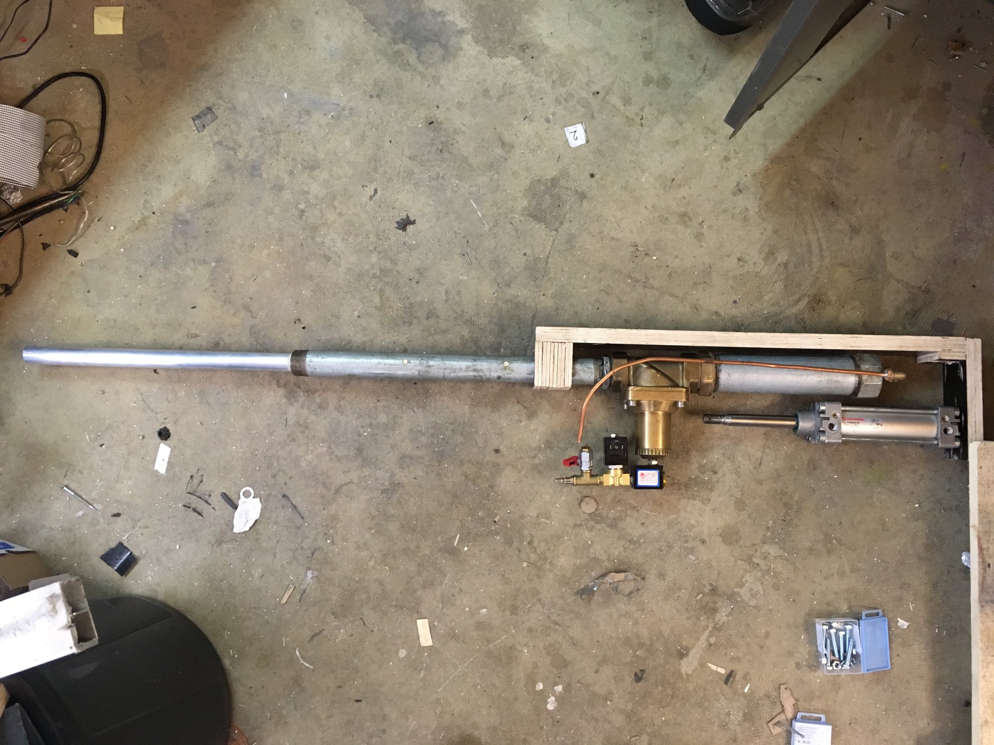 but would it work? The cannon has a 1,2" piston valve, a short 2" chamber and a 90cm 25mm barrel. It will shoot slugs made out of wire rod and washers at around 50bars, the cannon itself is not finished so i can only guess the weight but it should be near 12/13kgs.
