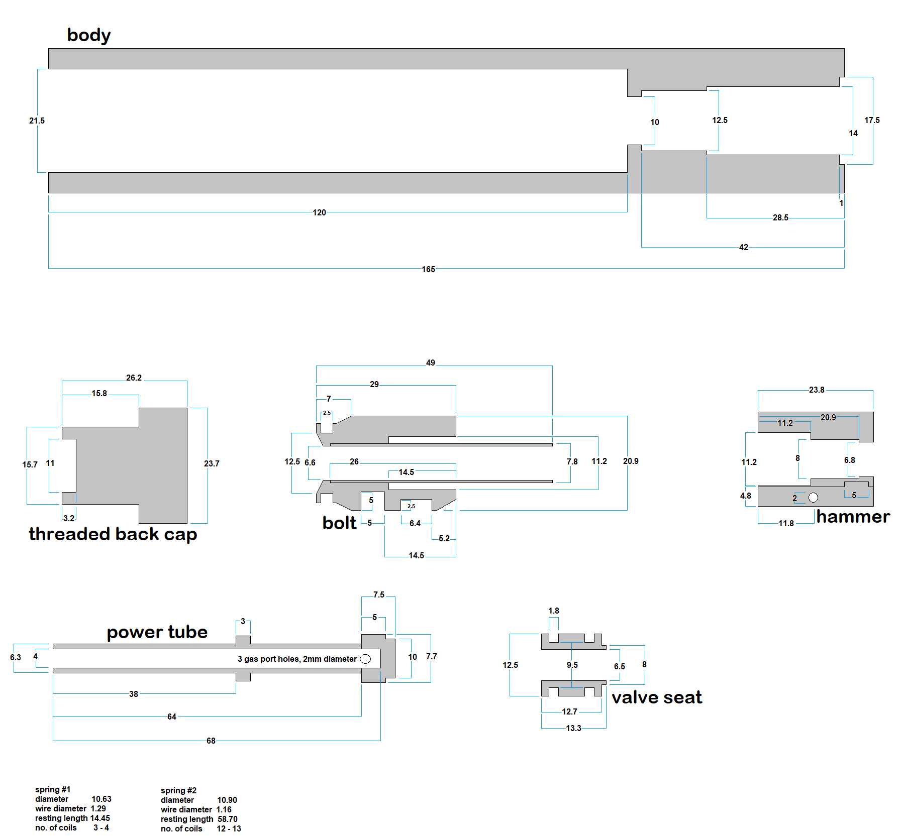 I have taken measurements of a Tippmann SL-68 II paintball gun internals, mostly for my own record keeping but others may want to take advantage of this data. I couldnt be bothered taking measurements of the bolt-catch or trigger - tough tacky, figure it out from the pictures. Adjustments may be required, but the measurements are pretty close.