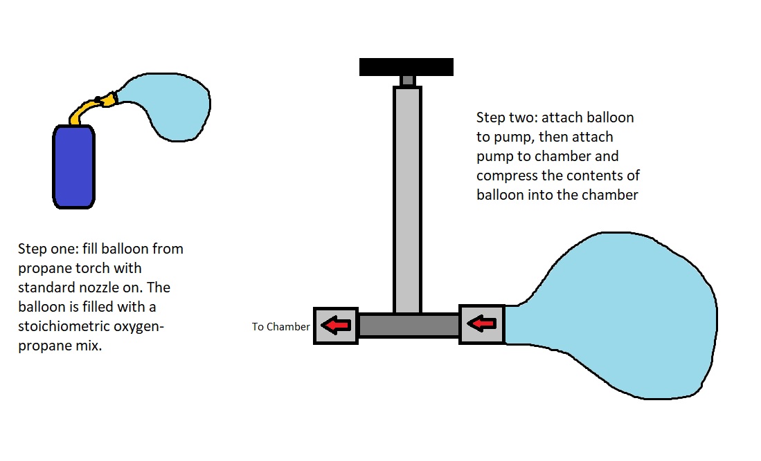 I know it's primitive but I think it would be easier to just inflate a balloon and pump it into the chamber instead of having to measure fuel and pressure between each shot.