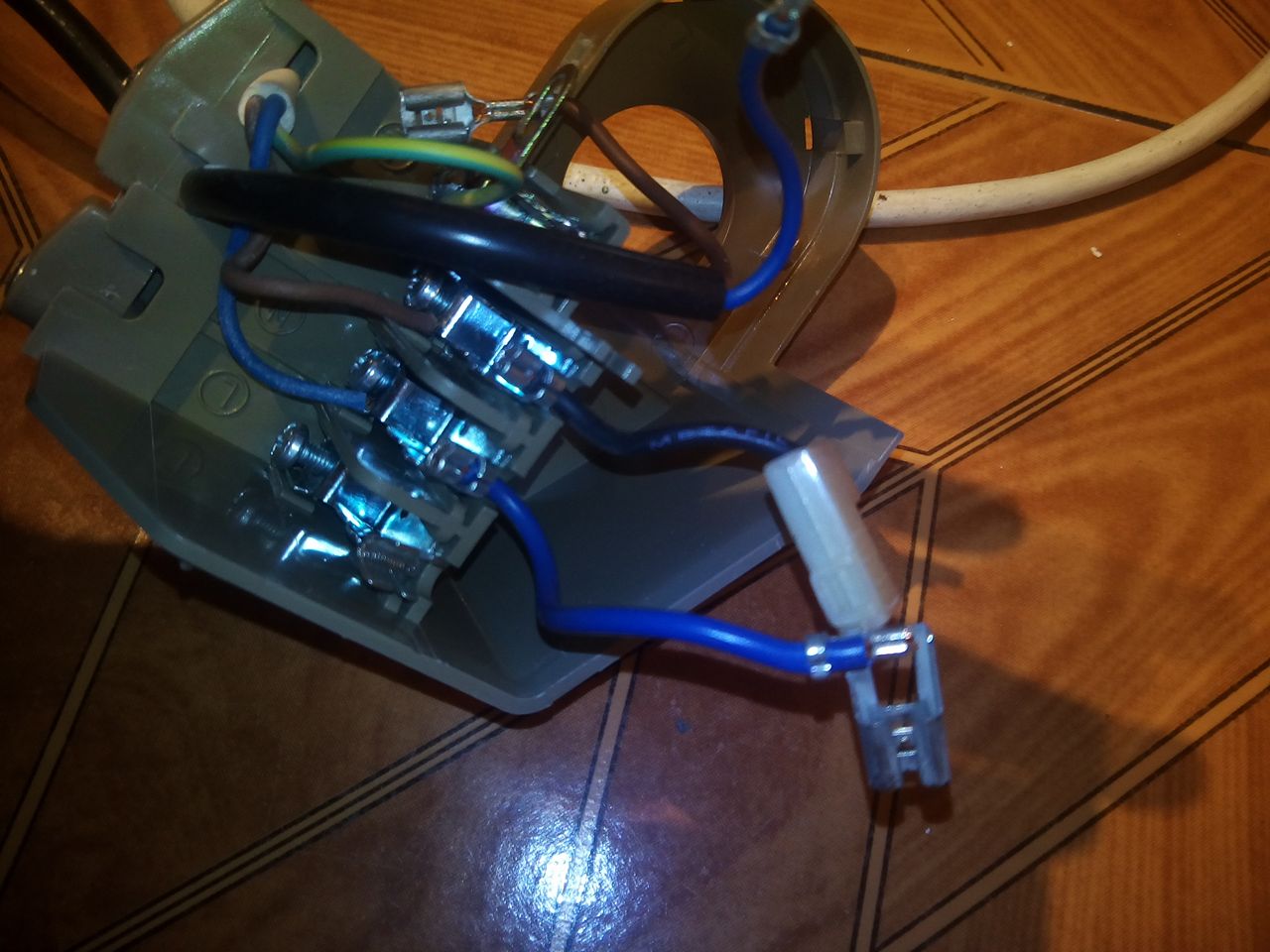 Blue blown and yellow green is wires from white cable (plug). Another blue and brown (capacitor) Where to hook up?