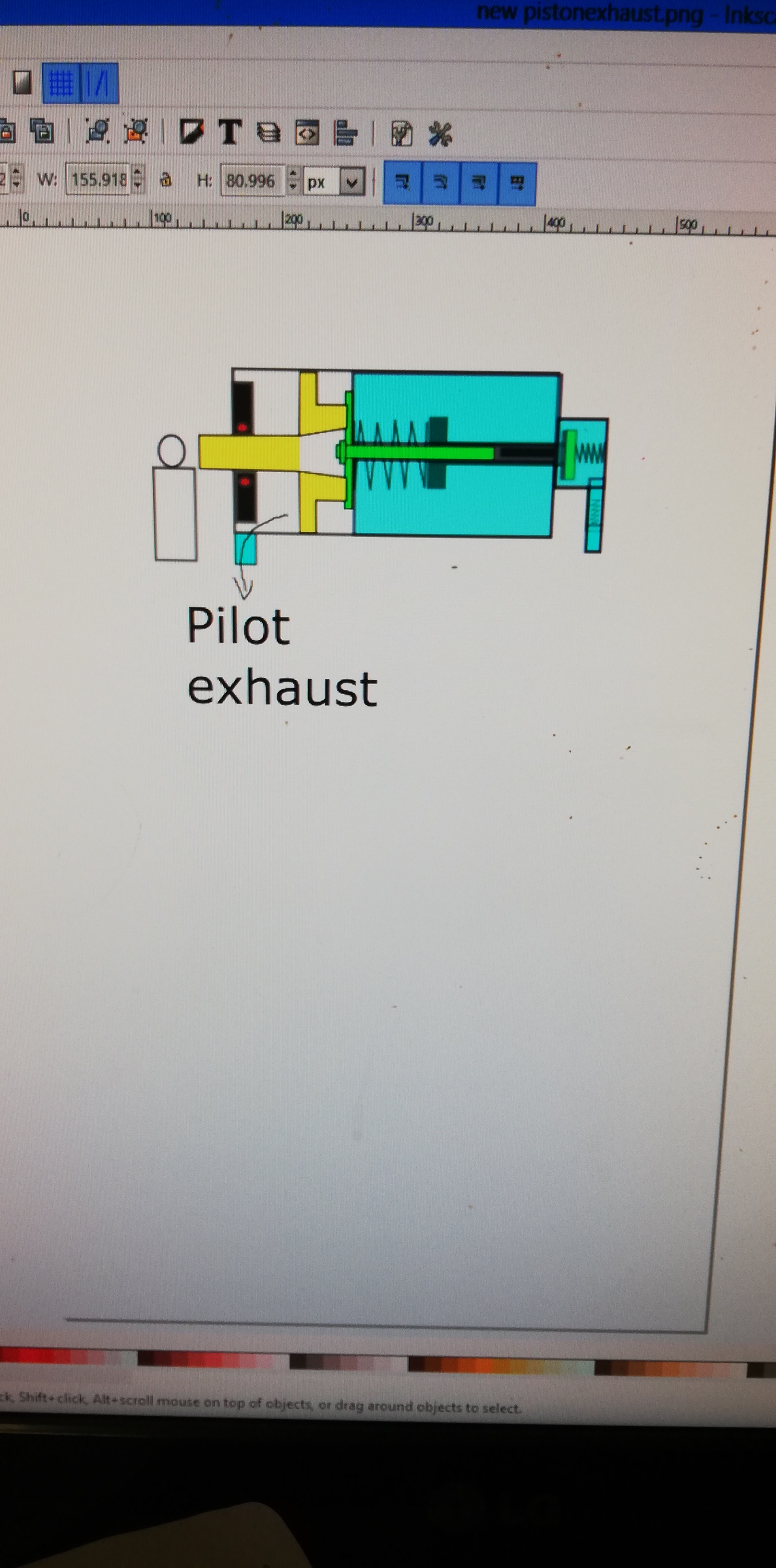 Piston valve, nozle normally in closed position (retracted).off 3 way N. O. Valve. front of piston pilot.