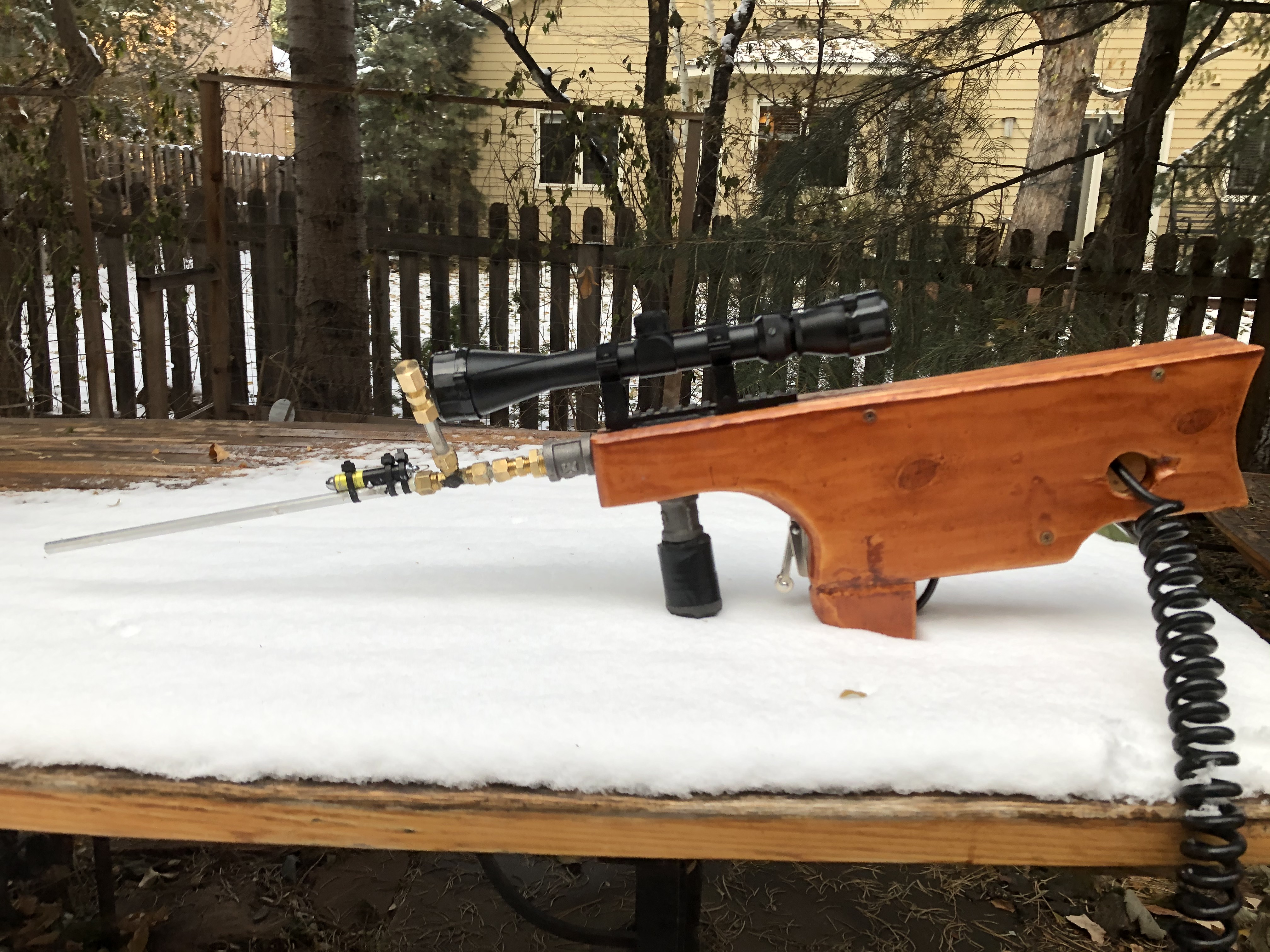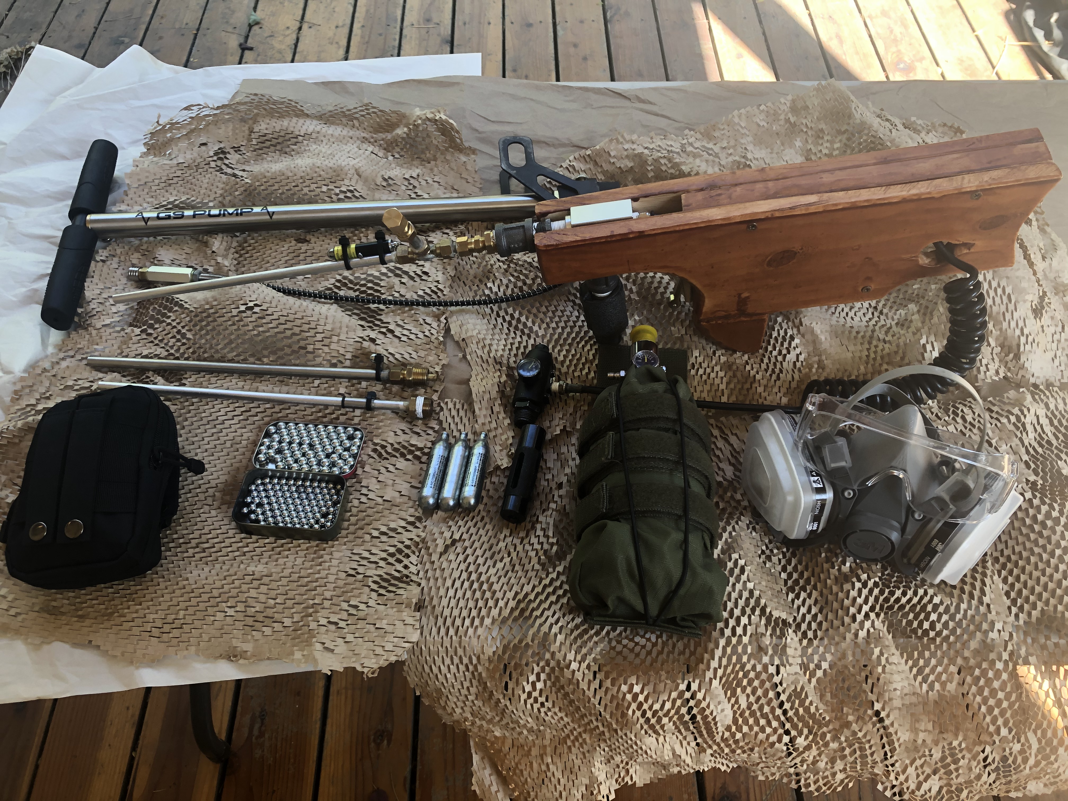 I also got another picture showing the completed cannon with all accessories. This gun continues to be an absolute blast to shoot, and gets fairly good gas efficiency. I get around 50 shots from a tank filled to 100 bar (1450.38 psi).