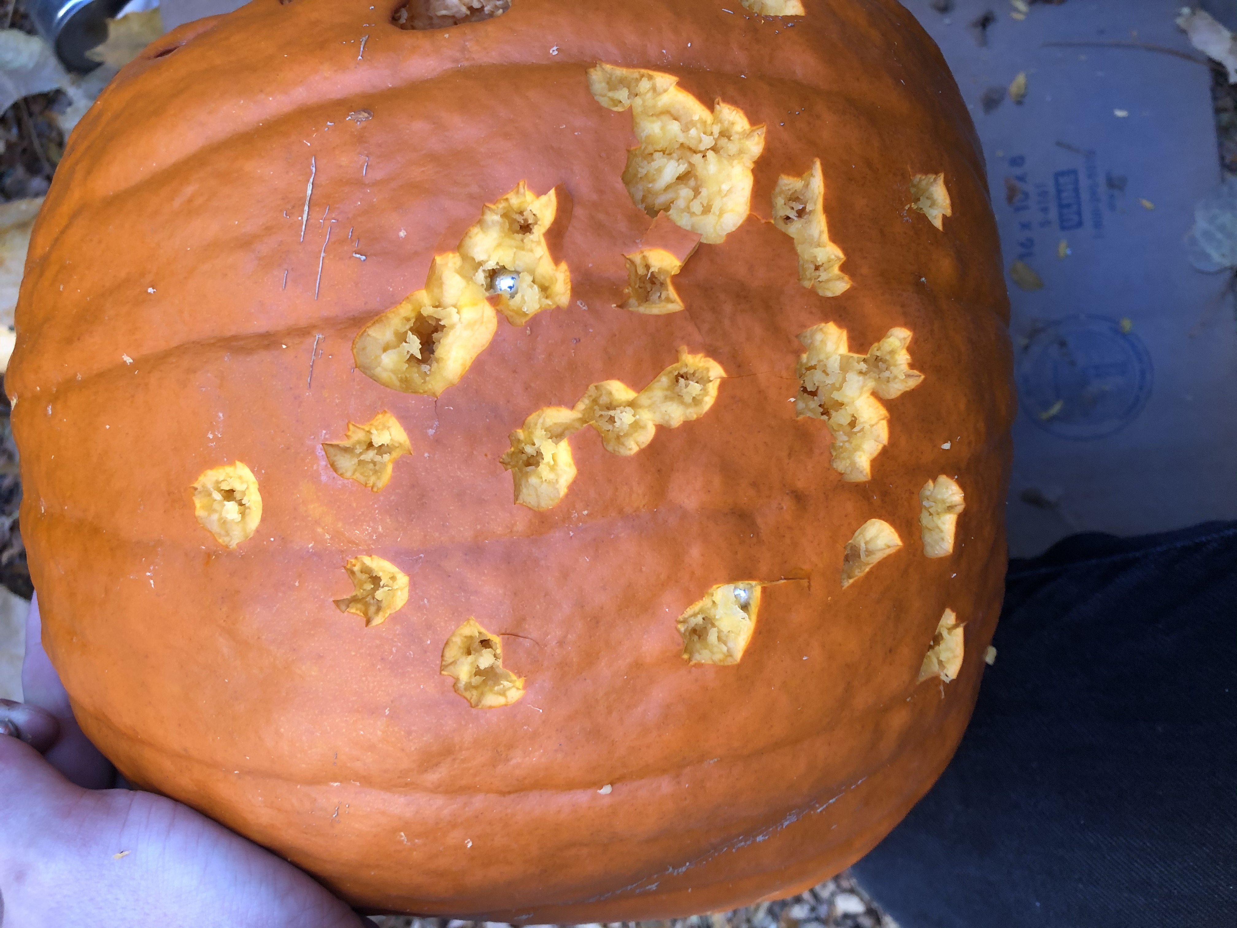 Finally, I had some fun with an uncarved Halloween pumpkin. Entry Exit