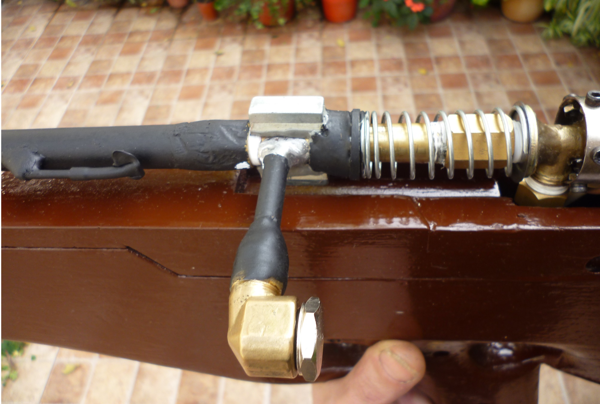 The ammunition carrier tube is part of the combustion chamber. The reason is simple. When this tube is not under pressure and it opens suddenly when combustion occurs, the spring that compresses the bb`s is destroyed because the balls try to use the tube as a "secondary firing gun" ... The solution is to let it be part of the combustion chamber, and the small spring does not suffer much. It is like in the drawing.