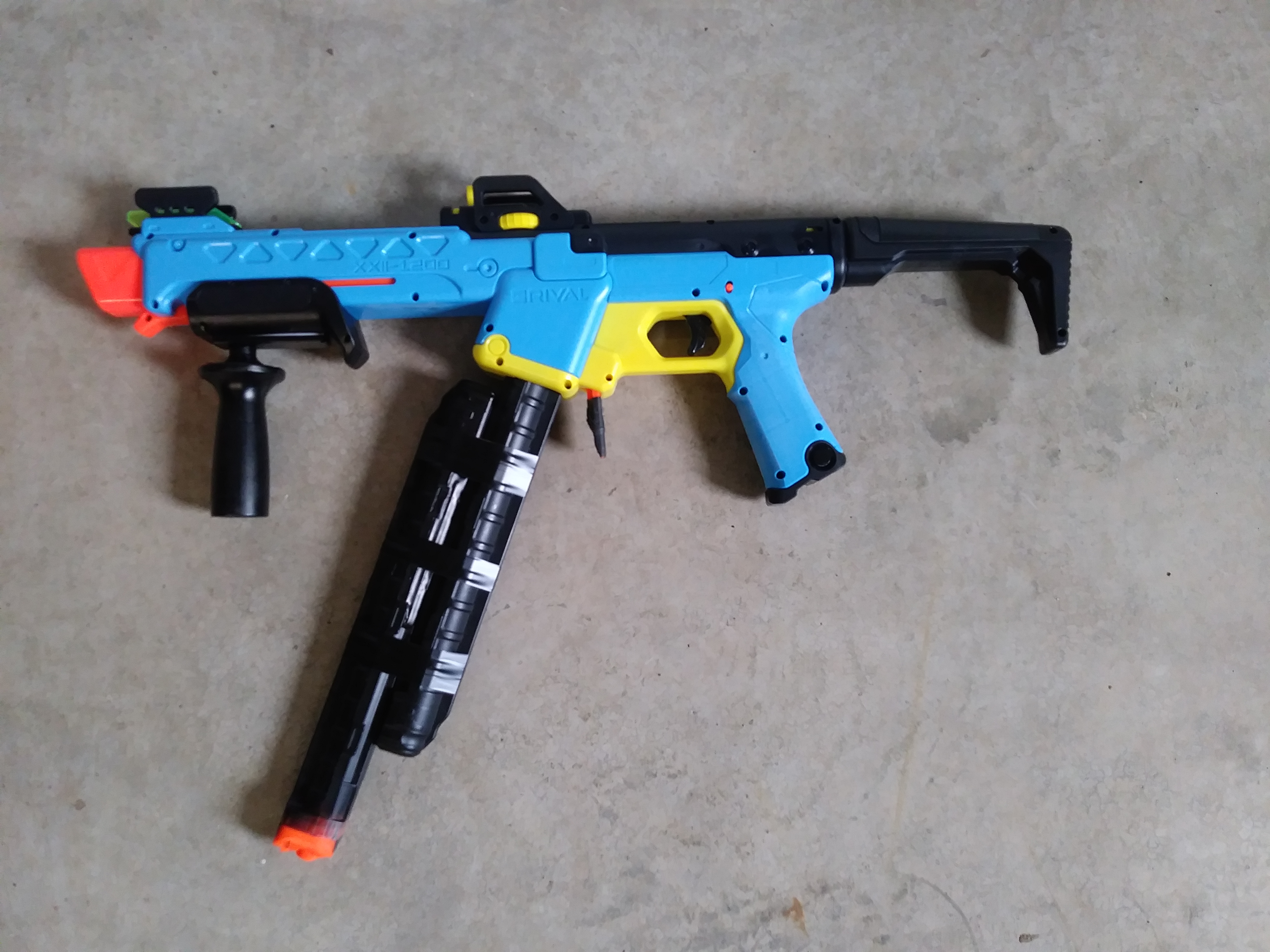 Added the vertical grip (drill handle) and the double flip mags, it just comes with one mag.