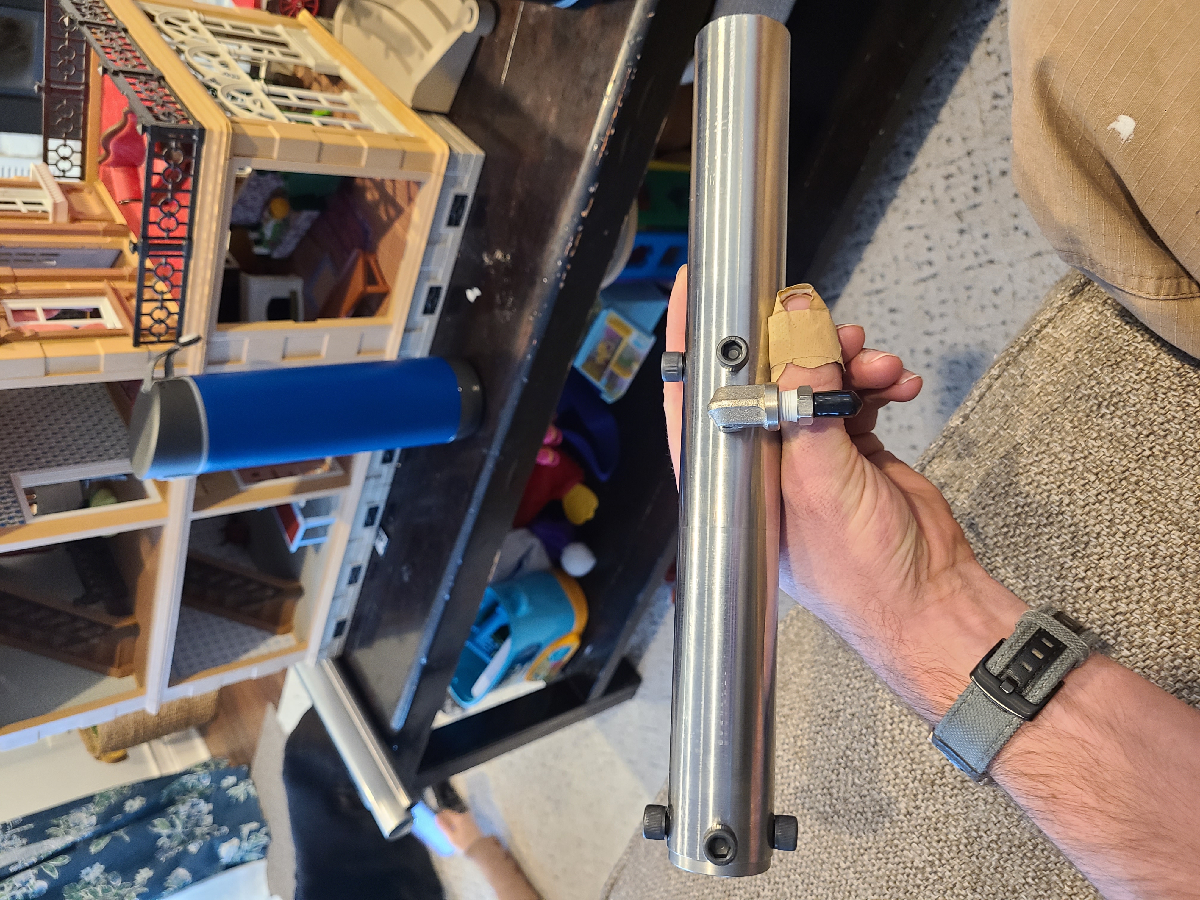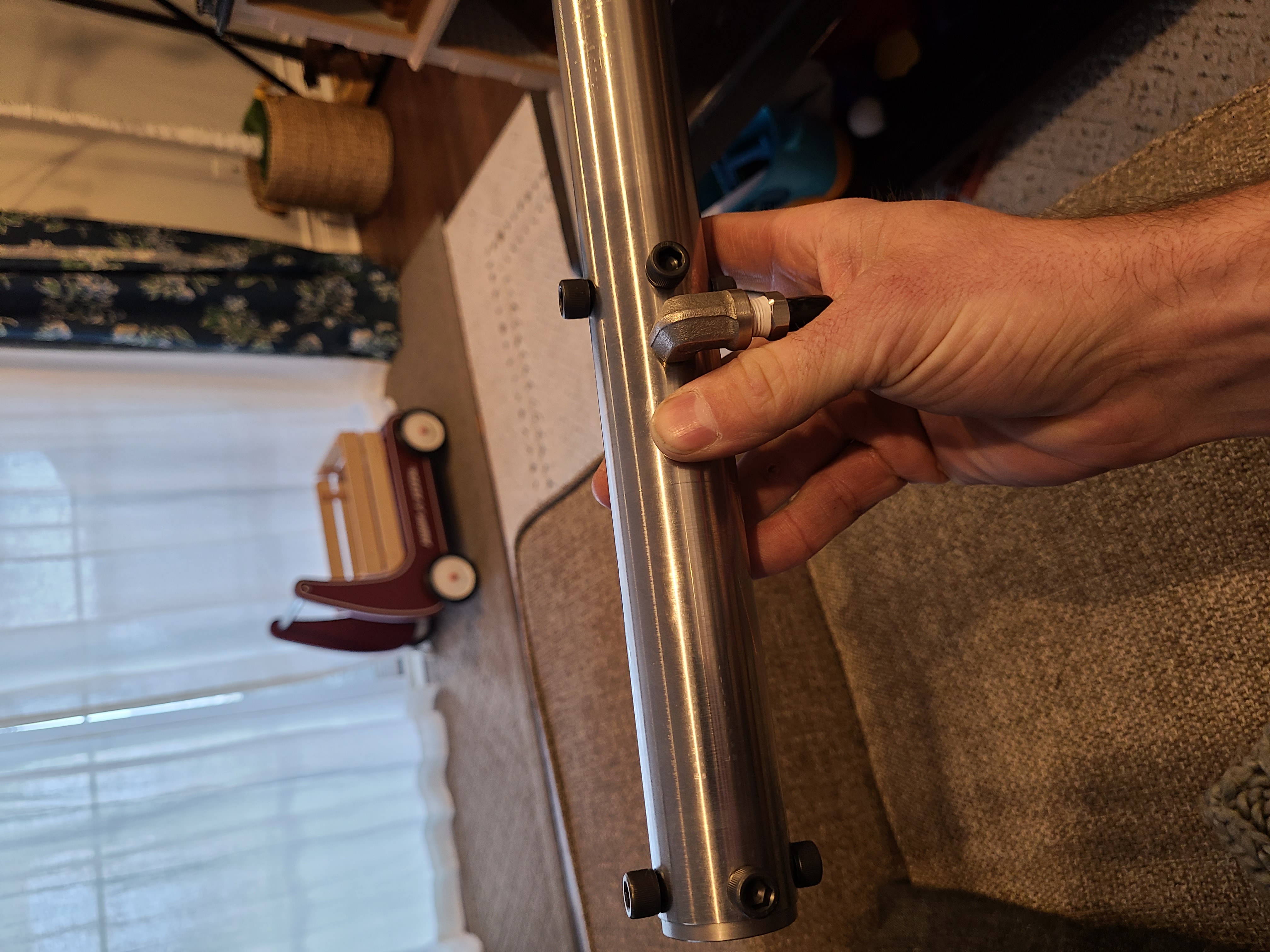 Next up is designing and building the hammer system to actually fire the gun. I have some 1000psi videos of tests done, but no real shots yet, as the gun is obviously not nearly complete. My plan is to affix another stainless tube under the existing one, and run a double hammer system. The secondary hammer will be longer, and in the lower cylinder, further away from the rear of the gun so shoulder-mount is a more natural position. The main hammer will link to the secondary hammer (the one in the primary cylinder) via a pin with a slot machined in one of the hammers to allow a bit of 'free movement' prior to engagement. This likely sounds overly complex, or doesn't make sense at all, but I want a reliable enclosed system here.