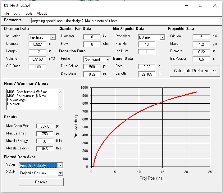 I am including a couple of simulations made by Jack, on this weapon. In one case, the combustion chamber works with 180 cm3 of air and in the other, with 150 cm3 of air.