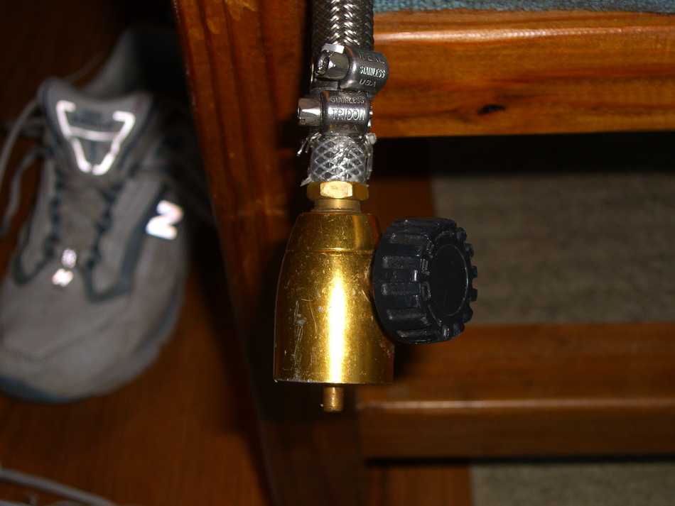 The propane meter is quite simple. Starting from the barrel I have a ¼ inch steel street elbow, a ¼ inch steel close nipple, a 1/4inch by1/2 inch steel coupling, a ½ inch sch 80 PVC close nipple, a ½ inch sch 40 PVC ball valve, a 4 inch long ½ inch sch 80 PVC nipple (this will vary based on volume of chamber), a ½ inch sch 40 PVC ball valve, a ½ inch sch 80 PVC close nipple, a ½ inch sch 40 cap with ¼ inch threads tapped into the top of it, a ¼ inch brass tee with a 1-300 PSI pressure gauge in one side and a ¼ inch brass street elbow in the other side, out of the elbow a ¼ inch by ¼ inch brass hose barb, connected to the barb is a length of braided hose used to hook up toilets, the other end if the hose is clamped to an old propane torch. All the sch 80 nipples are sprinkler risers and are available at any store that sells sprinkler supplies. The propane meter is tapped into the chamber at the end with the cleanout plug.