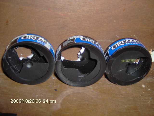 Now here are some pics and a video of me shooting 3 dip cans with a rubber slug at 100psi went through all 3 dip cans and put a whole in the wood behind it then lodged itsef into the wall behind the wood.