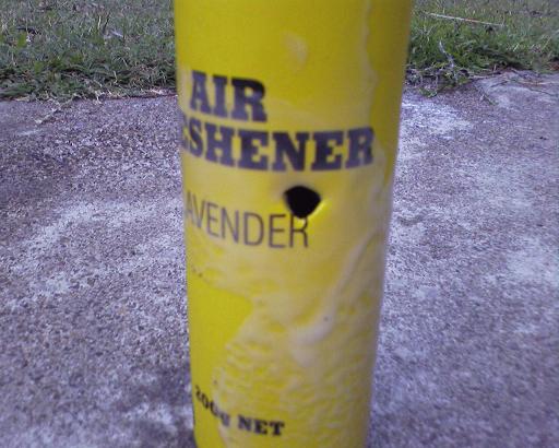 I like the compound bow in the can picture. You shoot people with this? It goes through metal. Do you just pump it once with a bike pump?