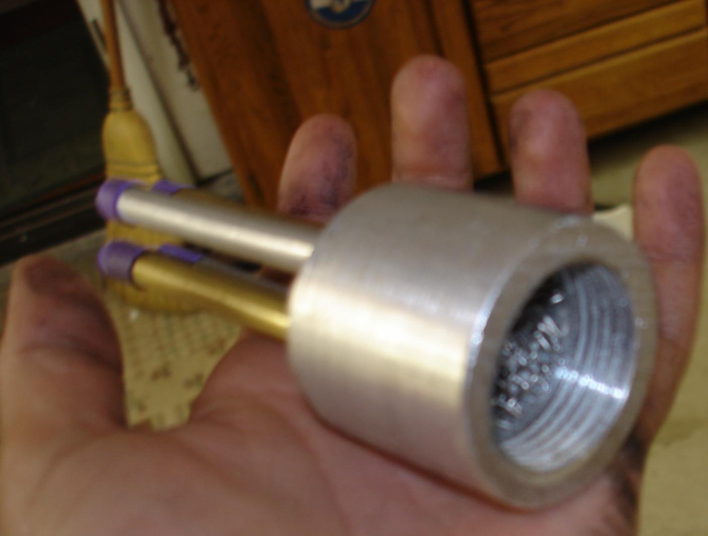 this is my gernade luncher. what you do is fill the small tubs to the top,the capacity on min is 67 bbs in all. you connect it to a valve using a 1" brass coffling from there to a air source it can shoot at 456fps,i have a speed gun i clocked it and did the math from there post for informaton