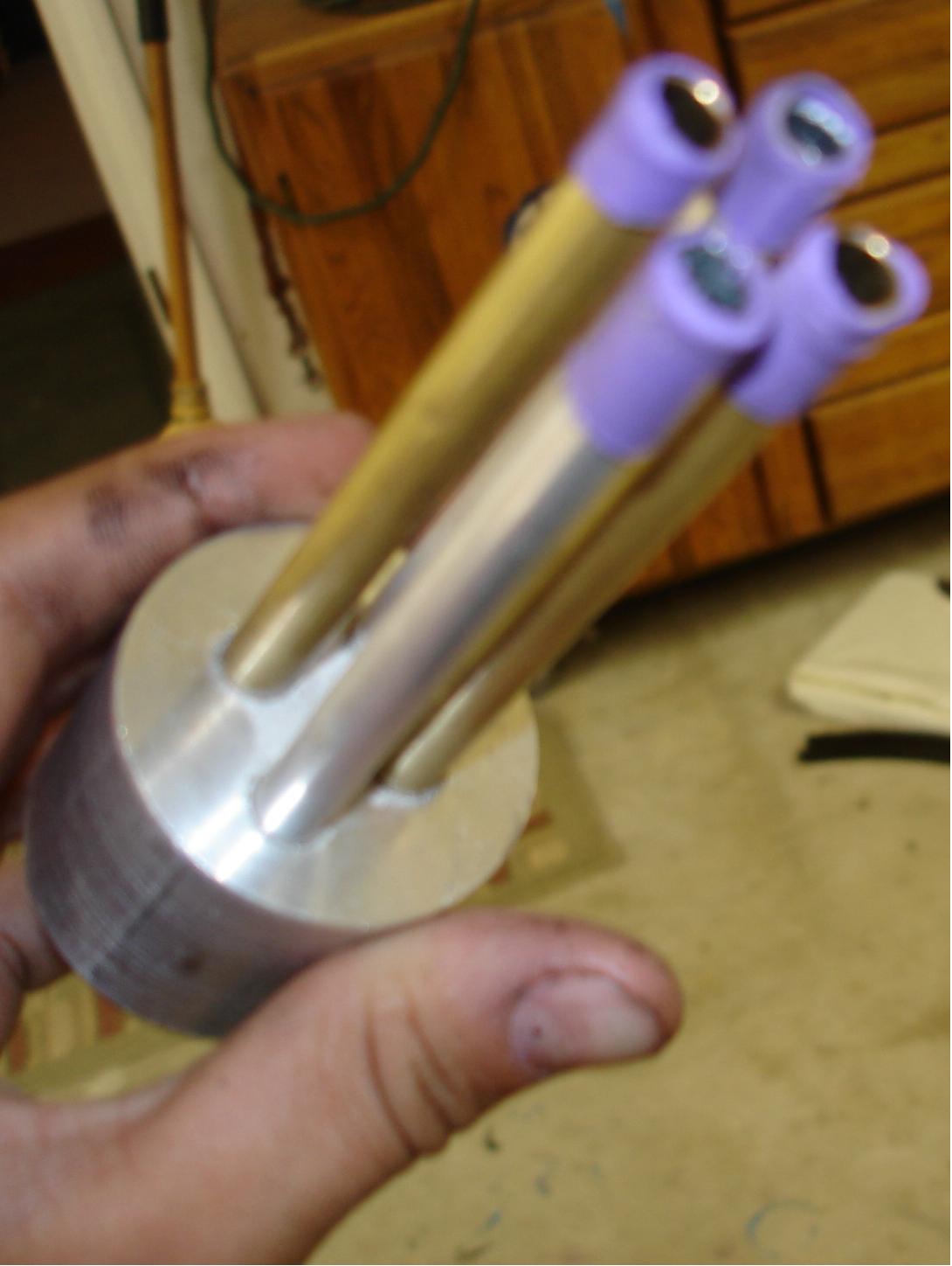 this is my gernade luncher. what you do is fill the small tubs to the top,the capacity on min is 67 bbs in all. you connect it to a valve using a 1" brass coffling from there to a air source it can shoot at 456fps,i have a speed gun i clocked it and did the math from there post for informaton