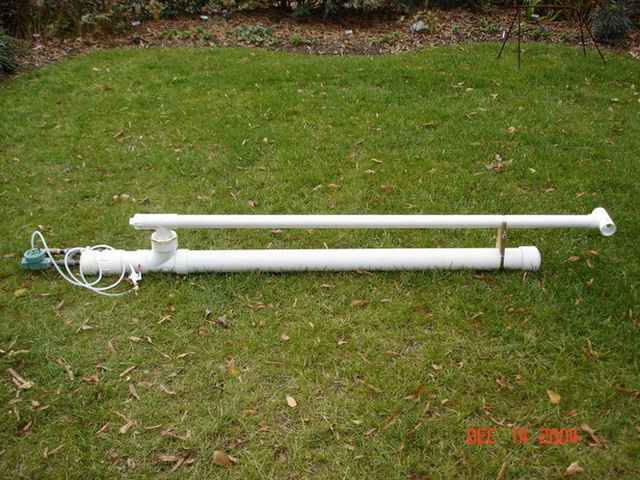 Here is a cannon which I like to call the mini LRPL-01, it uses the same principle as the much larger and much more powerful original LRPL-01. It uses a piston valve like other cannons exept for the fact that in the 3" tee there is a 1.5" peice of pvc pipe with an elbow on it, this is what the piston pushes up against to seal, thus the barrel is no longer inside of the chamber. This allows more air to be stored at about 60 psi in it.
