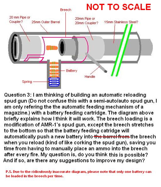 Thank you for your time iknowmy3tables! I was pondering on how you made the ejection mechanism, that was ingenious! I am planning on making a realistic pneumatic spud gun that resembles an Accuracy International Arctic Warfare rifle.