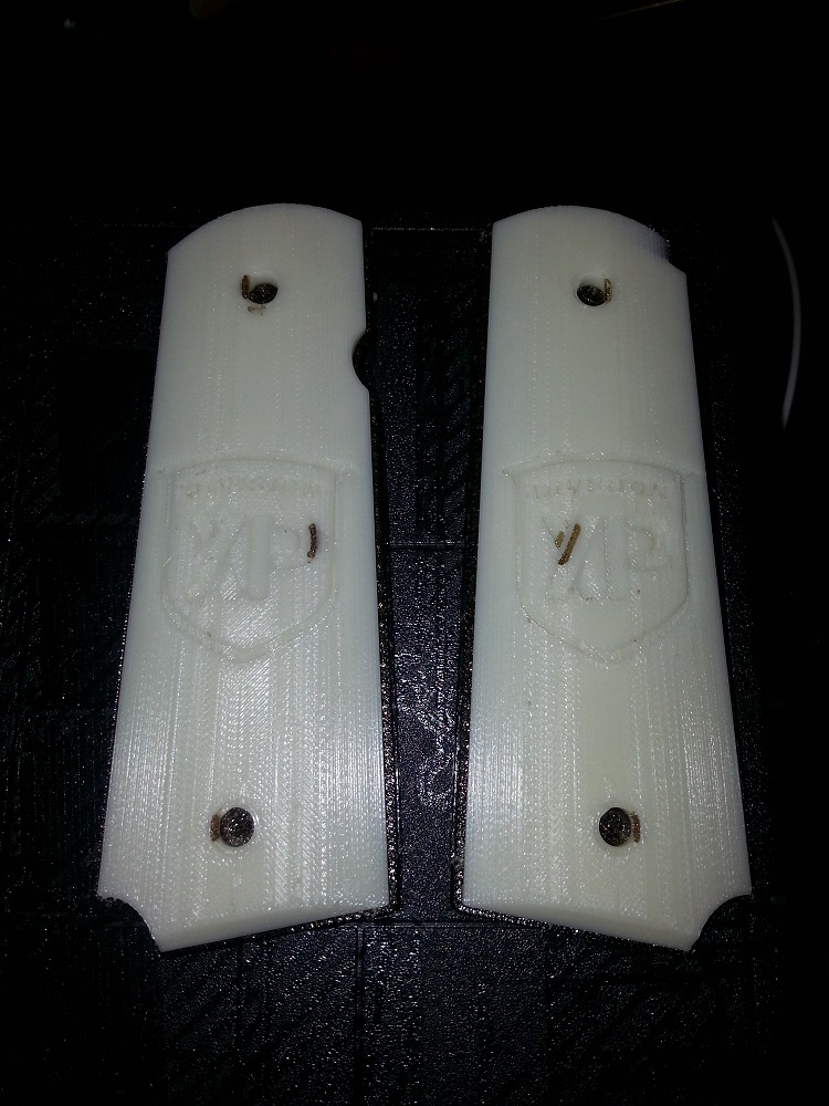 A small diversion, customized M1911 grips fresh out of the printer, need some cleaning up and finishing: