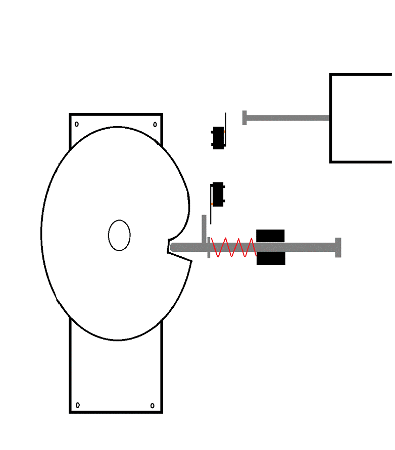 of such a small size For this reason I used a servo, because it is small and has strength. The mechanics to cause a linear movement of the actuator shank is the same, if I use a 555 or whatever. It seems to me simpler and inexpensive to use two small switches, worked as it is in the drawing, than to use a system with 555, and other electronic components. The result is more voluminous by the necessary electronic board, although it would also work well. The integrated should move the motor a certain time, so that the stem coincides with the groove of the wheel. Everything else, the mechanical part, would be the same.