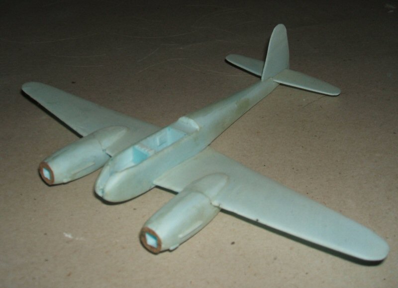 Blue foam a remarkably verastile material, here's a 1/72 scale rubber powered Messerschmitt Me 410 I had started making,a mere 9 inches span and only weighs a few grams (the fuselage and engine nacelles are hollowed out). I never got down to finishing it though as it was around the time when my interest in making holes in stuff took over everything else