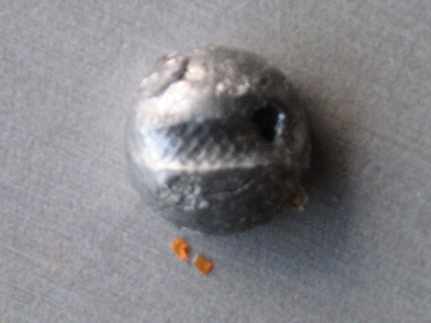 i think that would be because the camera is trying to focus on the background, try to take a picture with the sinker on a table or something with a less complex texture.