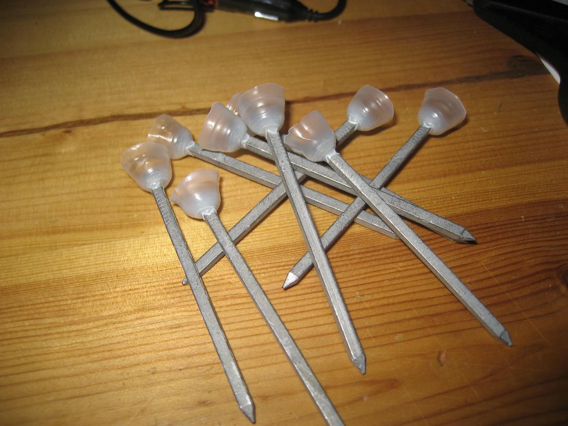 Mate they are some really nice looking darts. What did you use for the tail? I'm thinking you made a mould, pushed the nail in and just poured in hot glue? (it looks like hot glue or something similar)