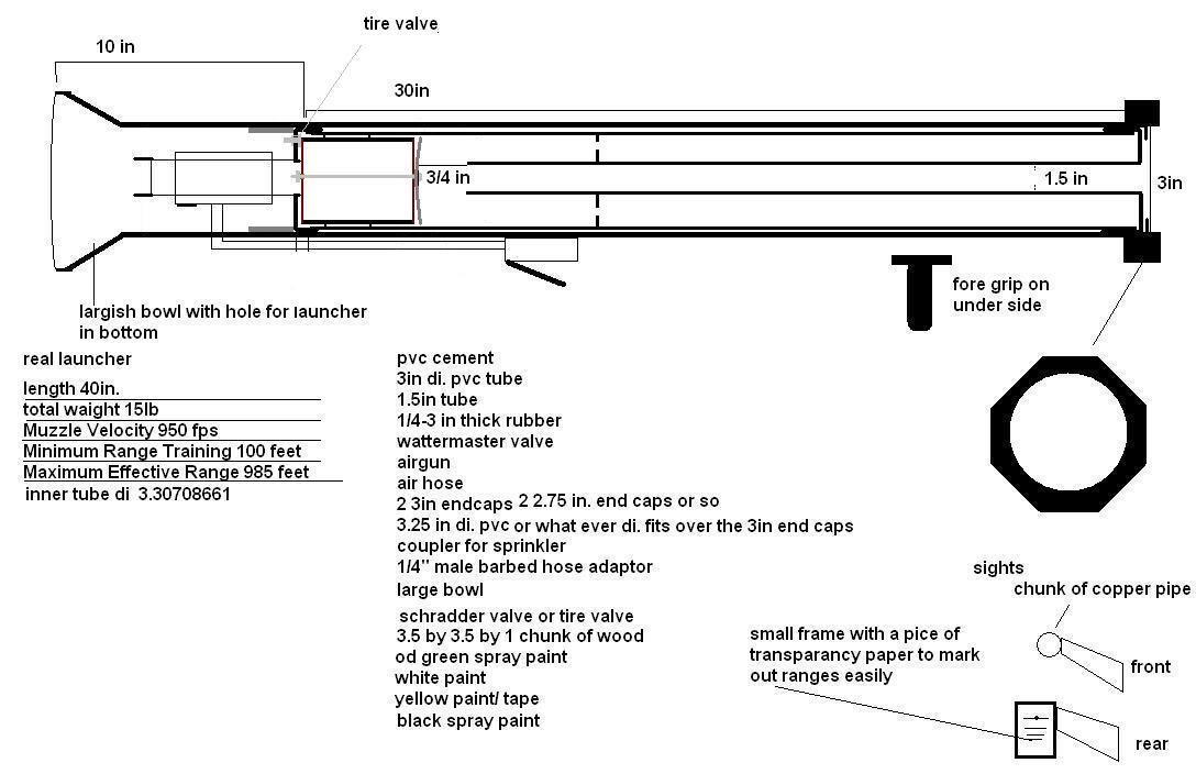 ok here is the updated plans, i hope to make the body tube removeable to service the launcher if it is nesscary with a pistion