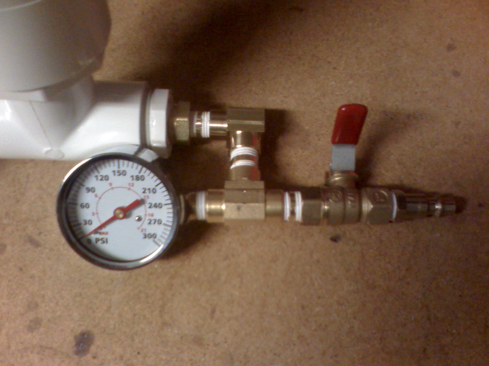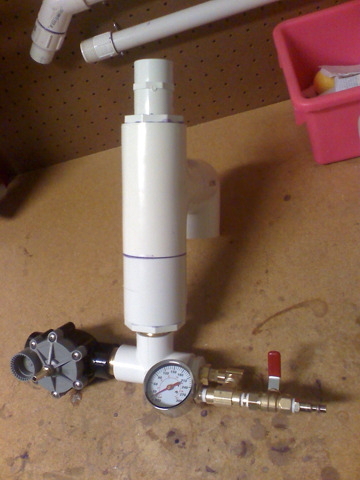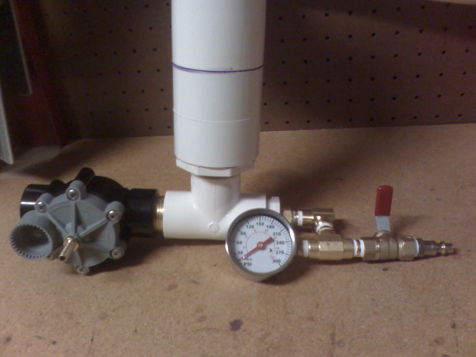 I'm not using the ball valve to exhaust the pilot, that's a safty valve. The sprinkler valve is the pilot valve. On the other side of the safty valve is the quick connect to fill with, hook it straight to my C02.