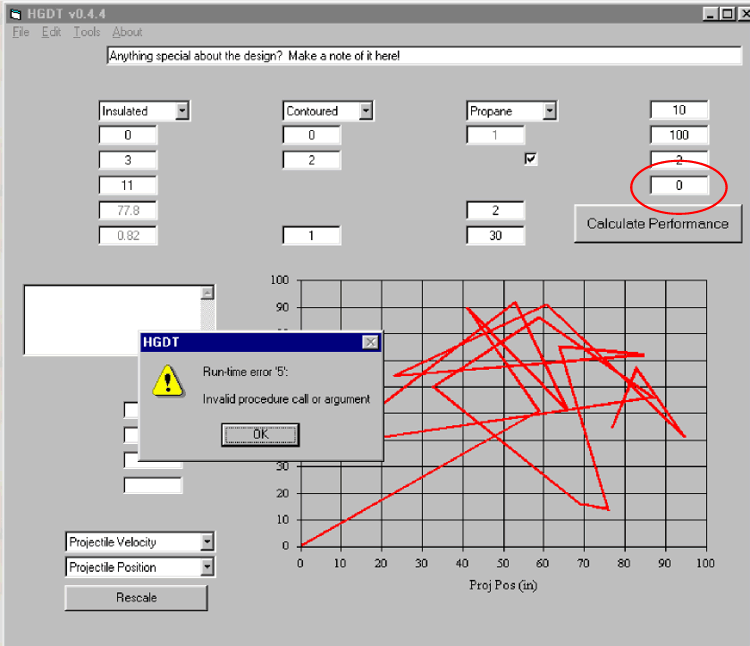 Those two problems are directly related to each other. I believe the first one should be gone and the second minimized... But the second may show it's face from time to time.jimmy101 wrote:Not sure if the new version has this problem but 0.4 did strange things when the "init position" was set to a small value. This was modeling 1x gun without any burst disk (burst pressure=0). You get the crazy graph and HGDT crashes.