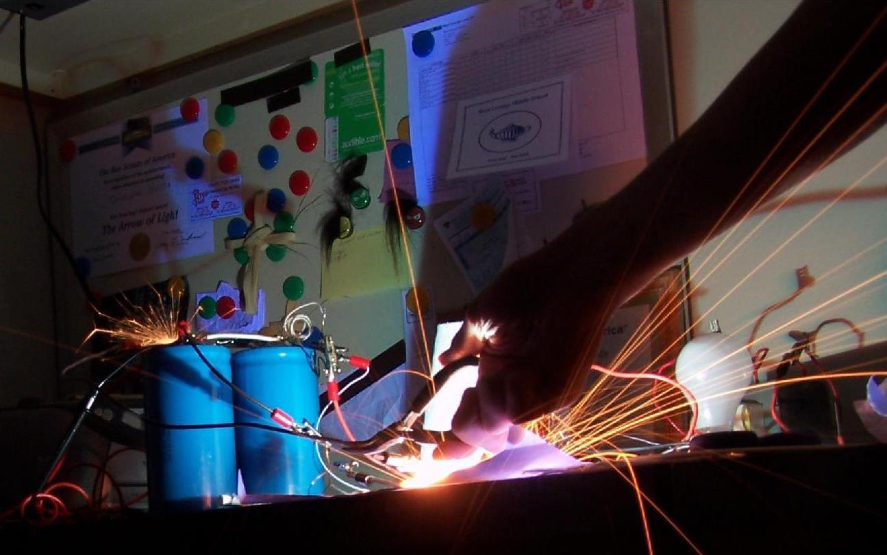 When you get bored of trying to figure out what went wrong in that rat's nest of wires and easily ruined circuits, and when your $50 SCR randomly stops working after only 10 uses at less than 1/10th its rated current surge, build a simple switch that uses two large copper or stainless steel plates as contacts, something a bit like this*: