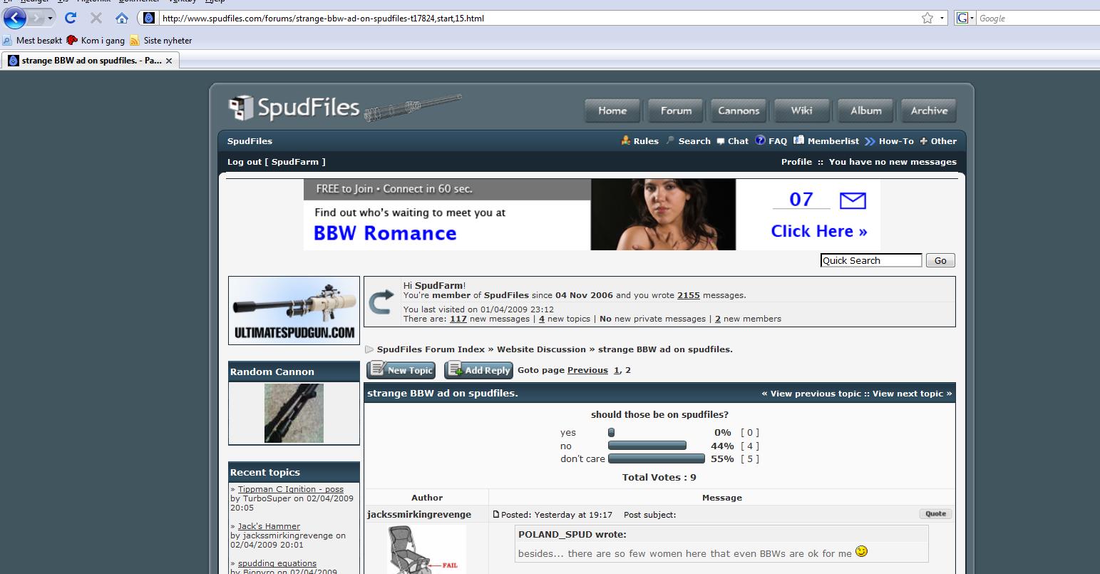 You do know what BBW stands for, right?super spuder wrote:wow, usually when everone gets adds like that at the top of the page i never see them. Mmmmm that one chick looks pretty hot, i thinks its a man though