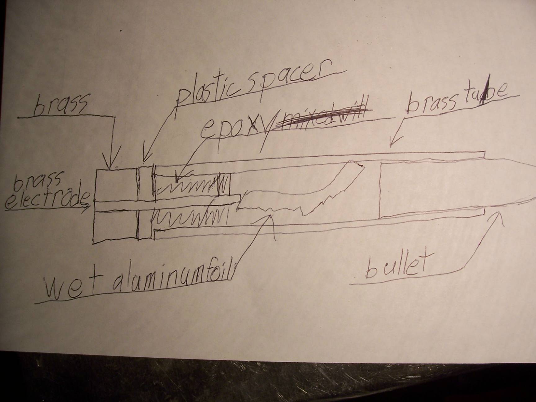 Actually, my first etg used a cut up co2 cartridge as a barrel and chamber, and it worked alright. The propellant is a 5x22mm shred of aluminum foil dipped in water bridging the screw electrode to the barrel.DYI wrote:Good work 245Tommy, not many people have this much success on their first try at an ETG.