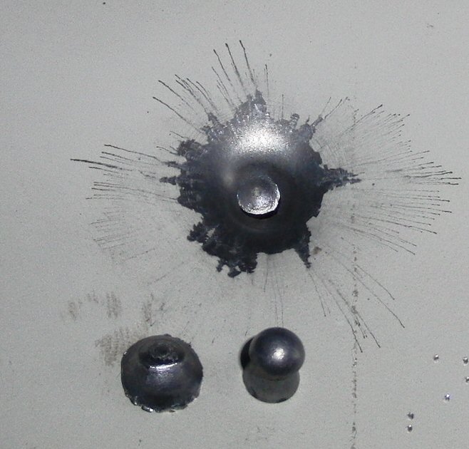 0.6mm steel target shot at 8x filmed at 420 fps, just barely didn't penetrate: