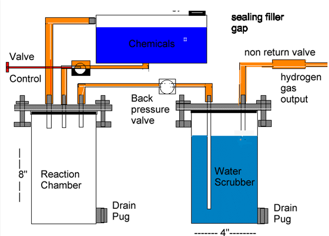 BTW, the design really needs a couple of pressure release safety valves. In addition, a trap between the reactor and the water scrubber might be a good idea (to keep water form being sucked back into the reator if the reactor pressure drops).