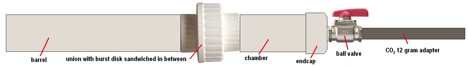 it's not really drawn to scale, you can make the barrel longer. The only steel needed is the parts that hold the co2 besides the burst disk part.Iceblade wrote:Is it drawn in the right dimensions/relations?