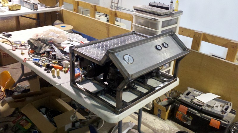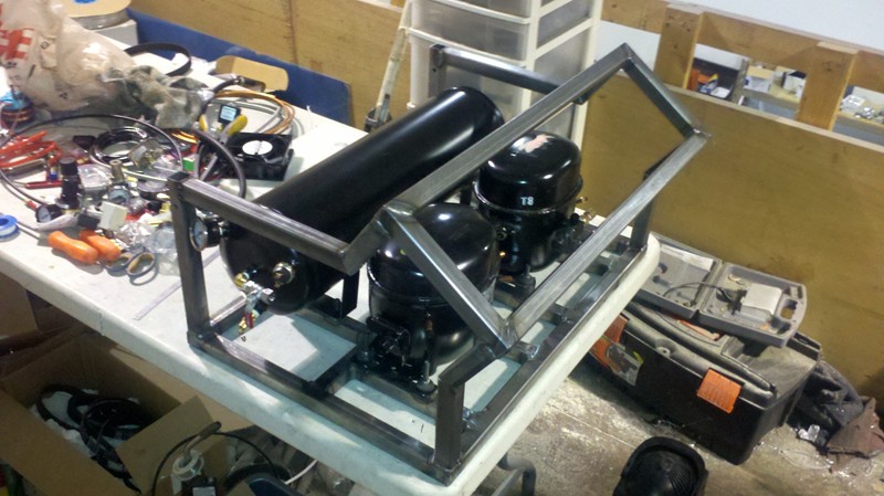 Wow, I may have to use this idea. My grandfather is going to teach me how to weld soon, so I will be able to make a frame. Just need the compressors, gauges, and safety switches. Looks good though!