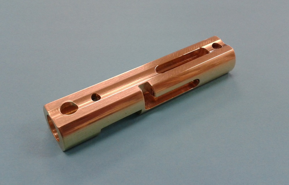 Comedy aside, here's the brass breech block I just finished, next to the naff stock plastic one: