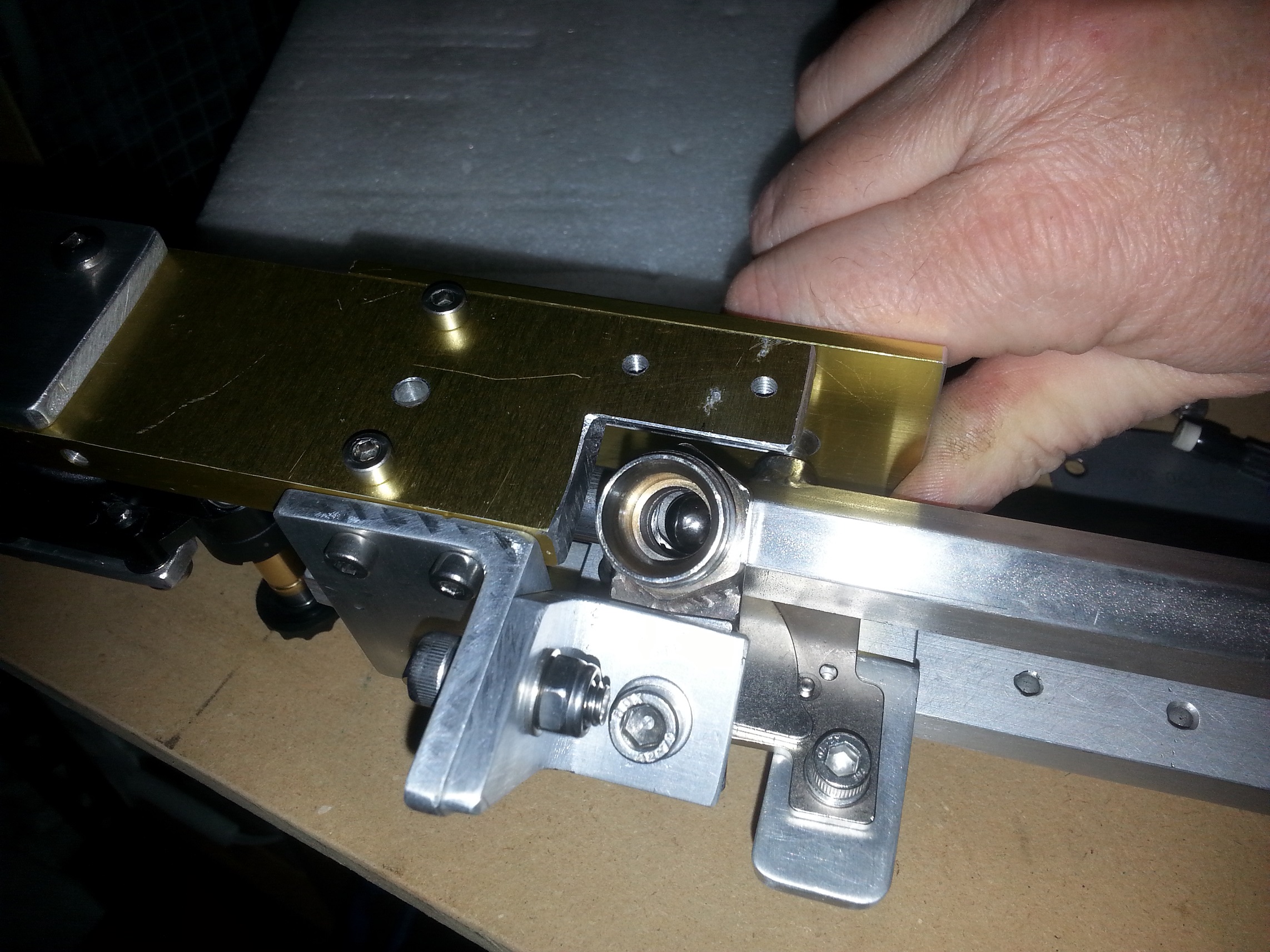 Details of the loading/magazine attachment and detent magnet which holds one BB in the barrel opening to stop multiple feeds